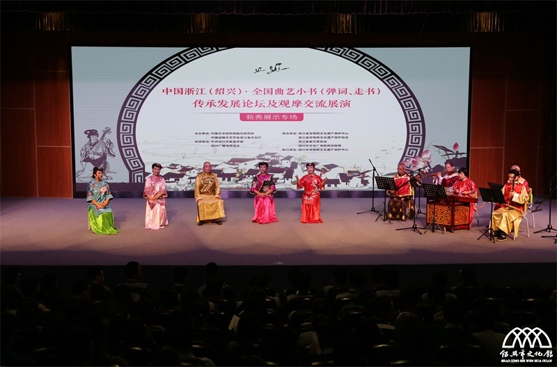 5月10日下午,本次论坛的观摩交流展演活动先期在绍兴市文化馆开幕,来自上海、江苏、浙江等全国11个省市区的30多位专家学者、20多位曲艺保护工作者和28个曲种的150多位传承人携40多个优秀节目应邀参加,盛况空前。“中国浙江·全国曲艺传承发展论坛及观摩交流展演”是一项浙江省文化厅联合中国艺术研究院曲艺研究所、中国非物质文化遗产保护中心曲艺(保护)研究室和中国说唱文艺学会开展的为期五年的战略性协作活动。与往年不同的是,今年以曲艺小书(弹词走书)为内容,旨在深入贯彻党的十九大精神,落实《中国非物质文化遗产法》和中共中央办公厅、国务院办公厅《关于实施中华优秀传统文化传承发展工程的意见》,通过学术交流和艺术观摩,加强曲艺保护经验交流,激发曲艺创演活力,培育曲艺传承新人,推动曲艺繁荣发展。