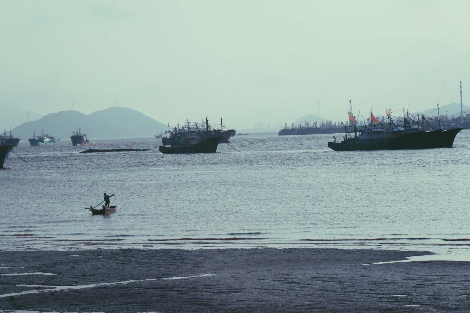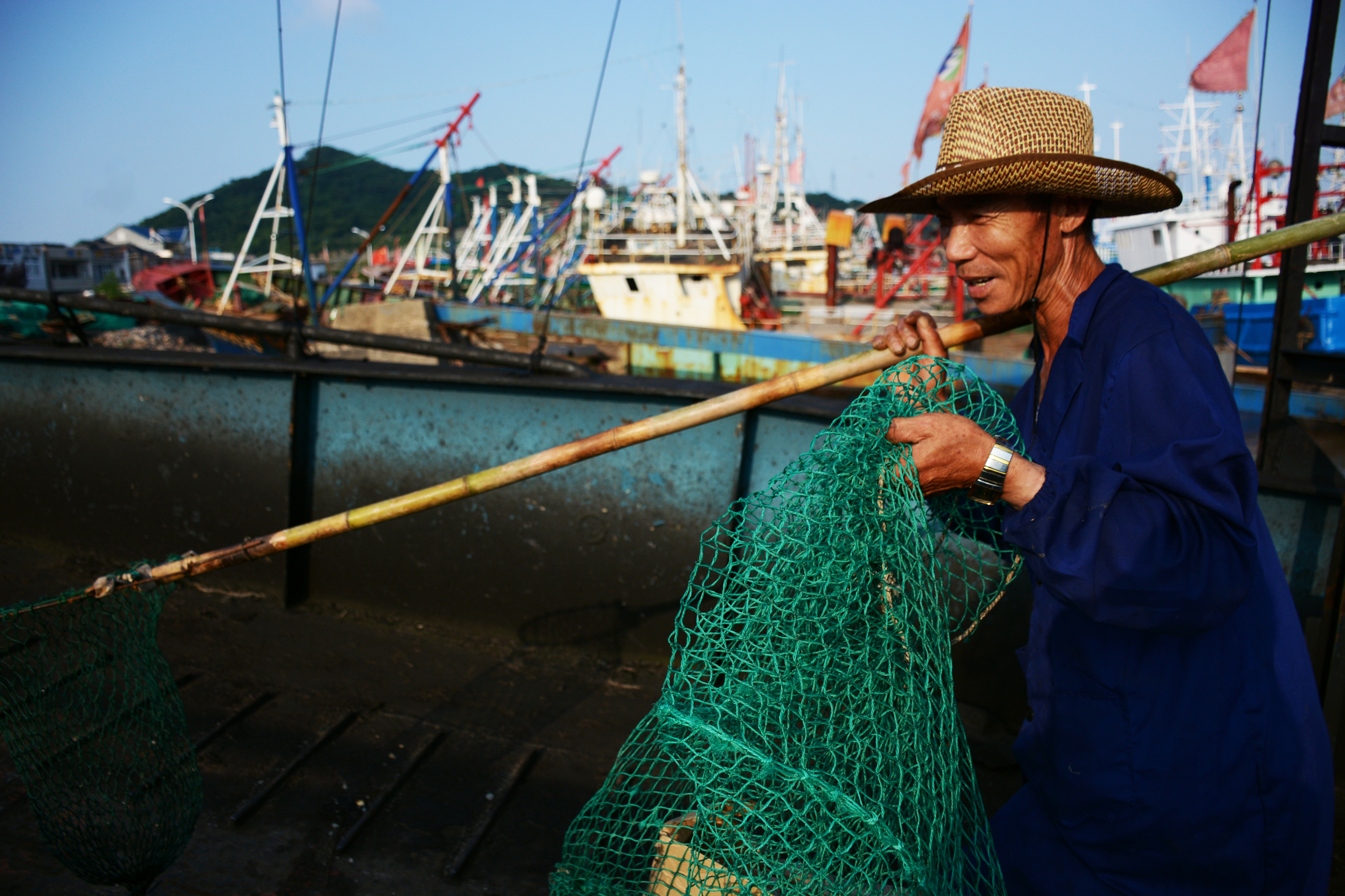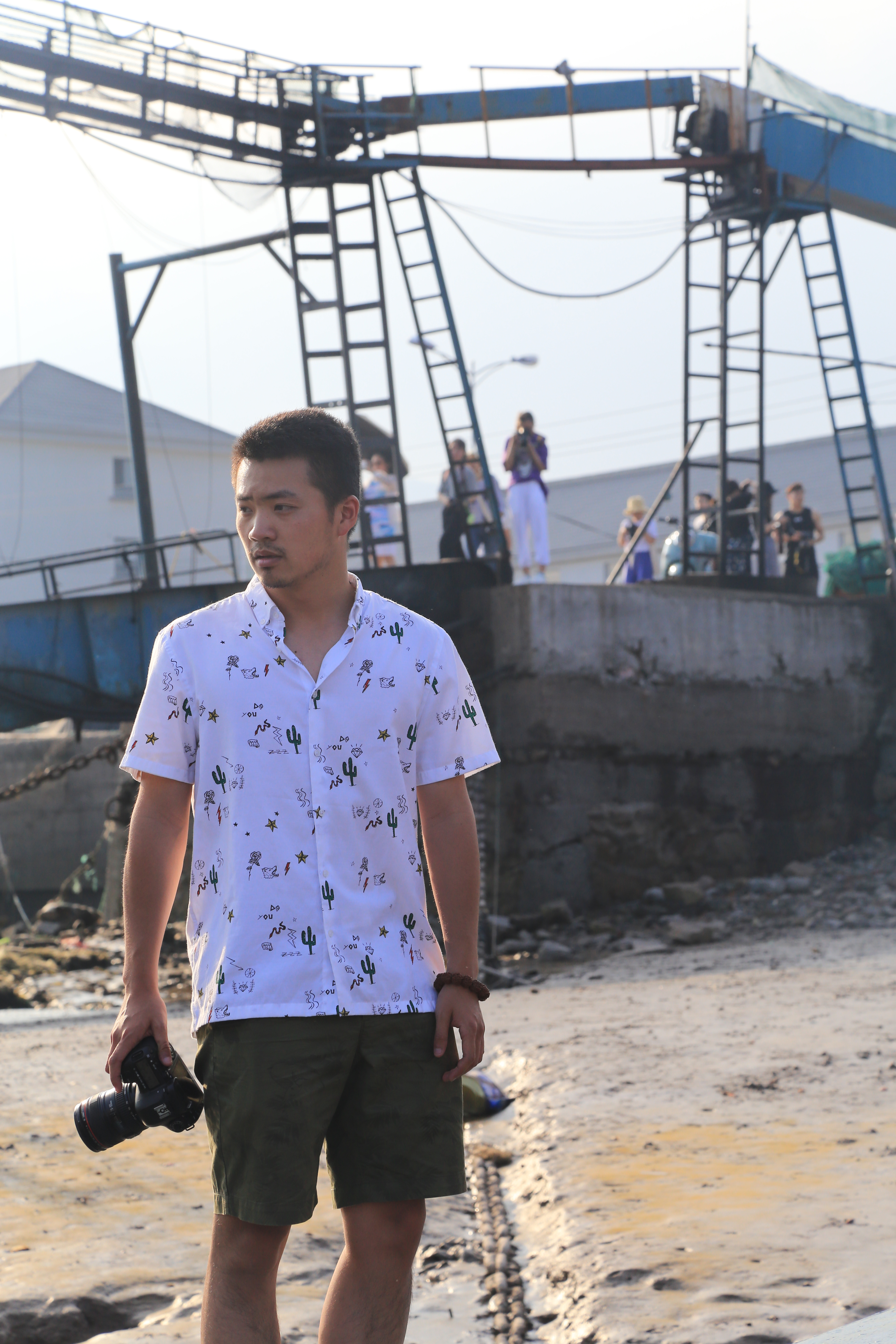 当天下午,大家来到《渔光曲》拍摄地东门渔村。那里的风光与杭州大不相同,由于处在休渔期,鳞次栉比的渔船排列在码头,桅杆林立;三三两两的工人行走在甲板上,或清扫,或修葺。矗立在山顶上的妈祖显得庄严又慈祥,无声的力量滋润着渔民们的心。