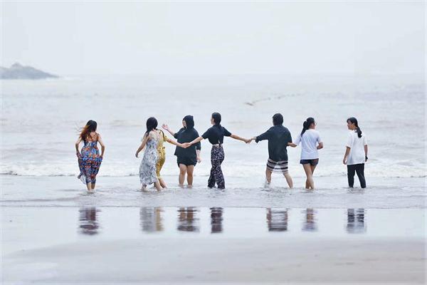 次日,檀头山岛的碧海蓝天将师生们拉入别样的世界。此刻眼前的大海则归于自然,宁静却又带着雄浑的力量,海浪一下一下拍打在沙滩上,留下水中的泥沙,又带走岸上的泥沙,用千万年来亘古不变的节奏谱写着属于大海的歌曲,东海如蓝,远山如黛,风光旖旎。看到这样的大海,不少同学忍不住放下手中的相机,脱鞋跑入水中,踏水而欢。