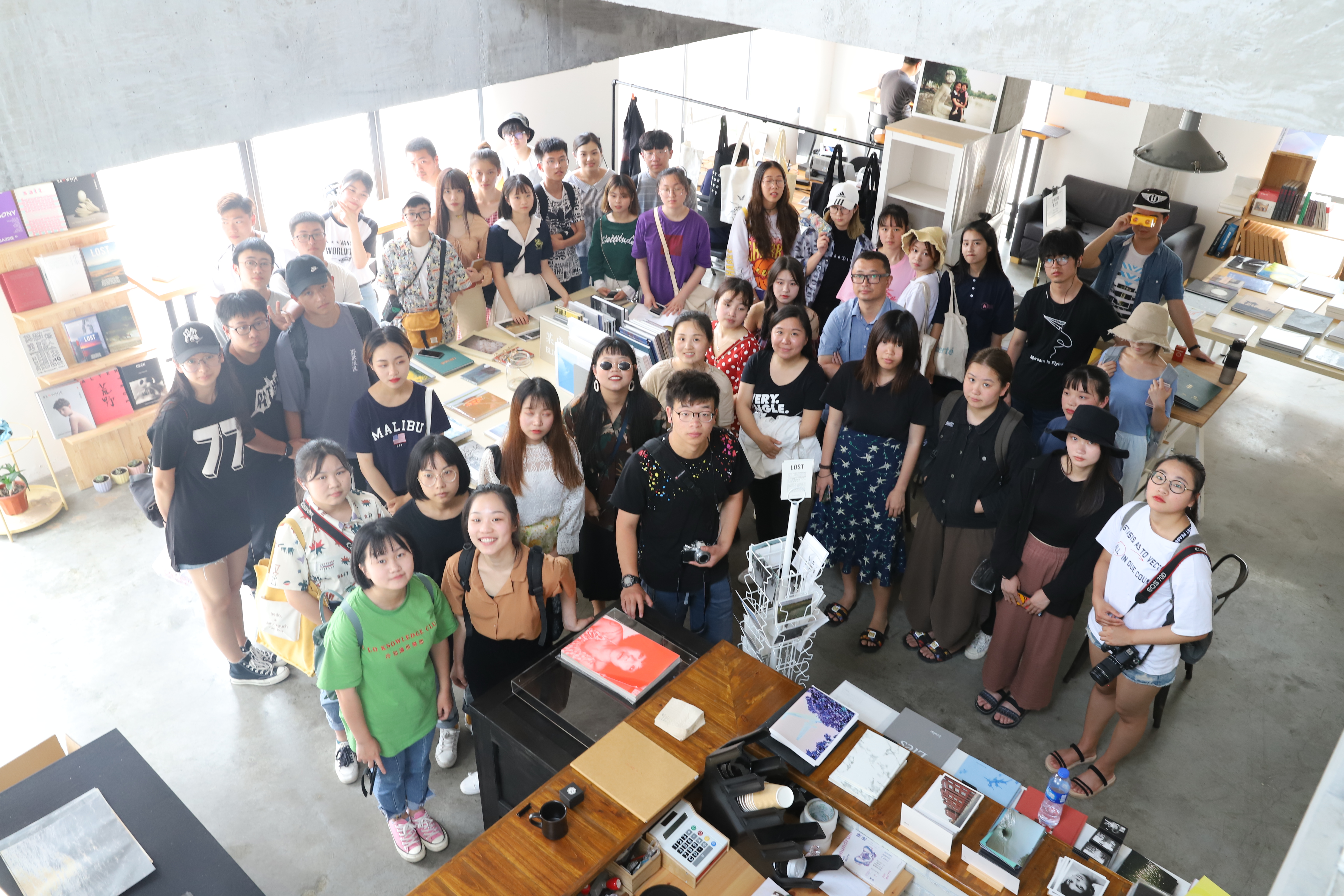 离开前的最后一天,采风小组来到了宁波市区。假杂志摄影图书馆位于宁波工程学院东校区附近,图书馆不大,像是一个二层楼的小咖啡馆,loft风格的装修是这里看上去极具个性,这里陈列着国内外许多摄影作品集,诸如IMA、森山大道的影像志《记录》、无像杂志出版物、Same Paper出版物等等,其中许多作品别具一格,同学们沉浸其中体会着个中乐趣。