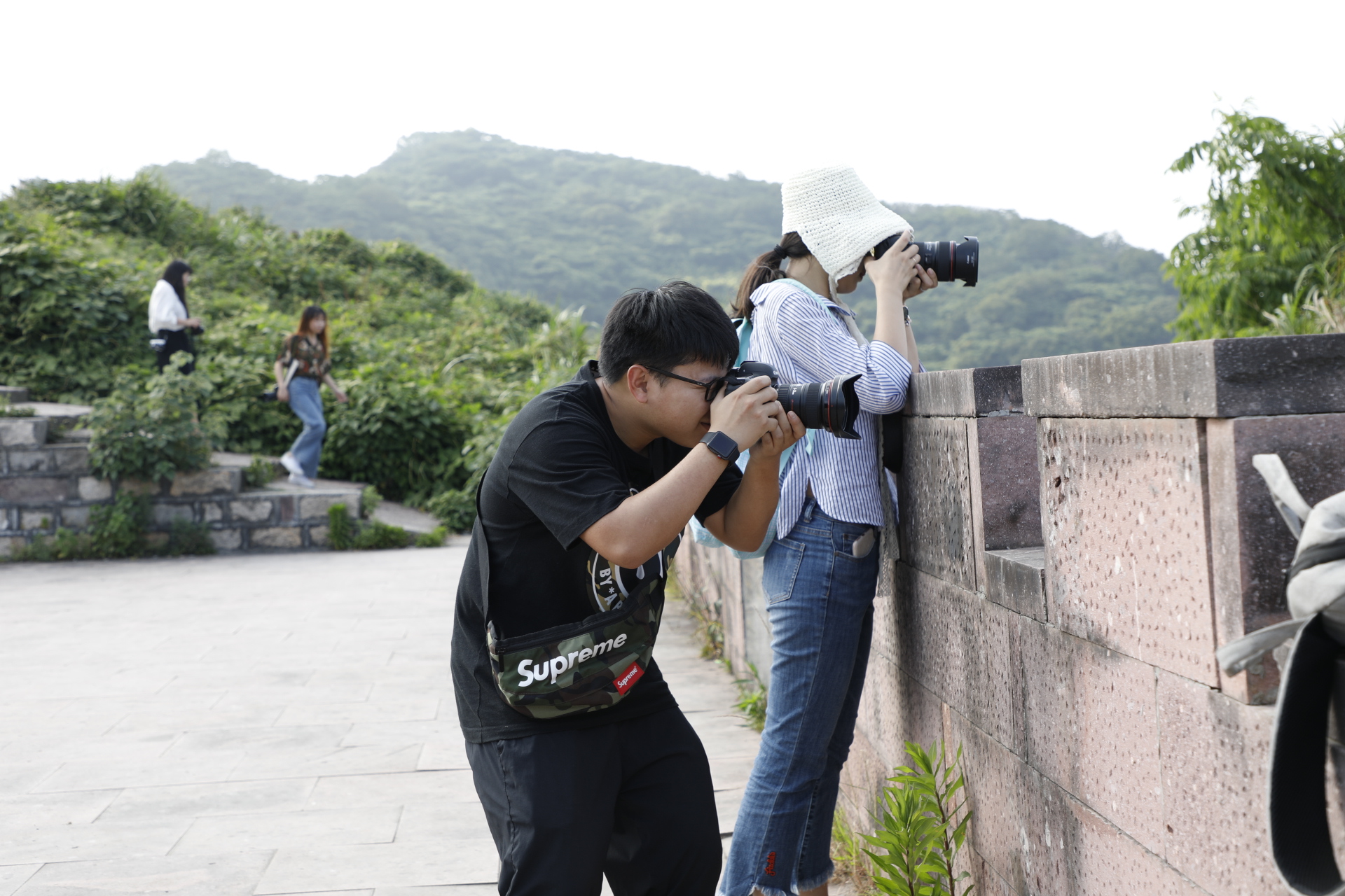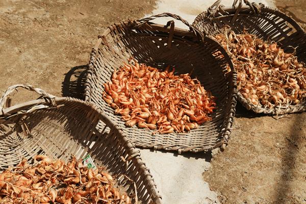 第三天是最为炎热的,大家一早就来到沙塘湾古渔村。这是个普通的村庄,村子的最外围有一条蜿蜒的小路,沿海而建,路边没有围栏,仅用两根绑着彩旗的红绳分割村庄与大海。站在那里能看到远处的小船横七竖八地停在被山群围住三面的海上。石头房错落在海边的山上,那里的村民生活得安逸,大海似乎隔绝了外头的喧嚣,他们种着枇杷、锤着海石花,享受着难得的宁静。