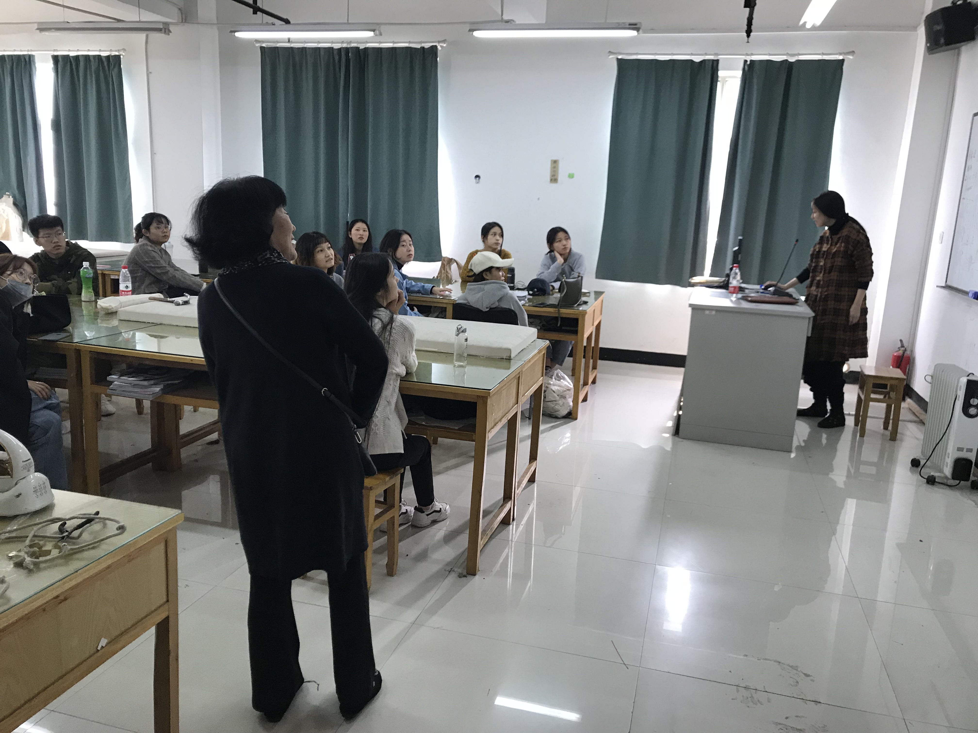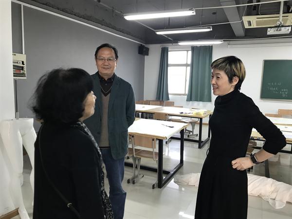 10月24日上午,美术系特聘教授蓝玲应邀到访,与系领导班子及相关专业老师就专业建设、人才培养、社会培训及校企合作等方面内容进行商讨,并一同参观新改造完成的美术系实训室、东冠校区数码印花实训室、服装仓库等。