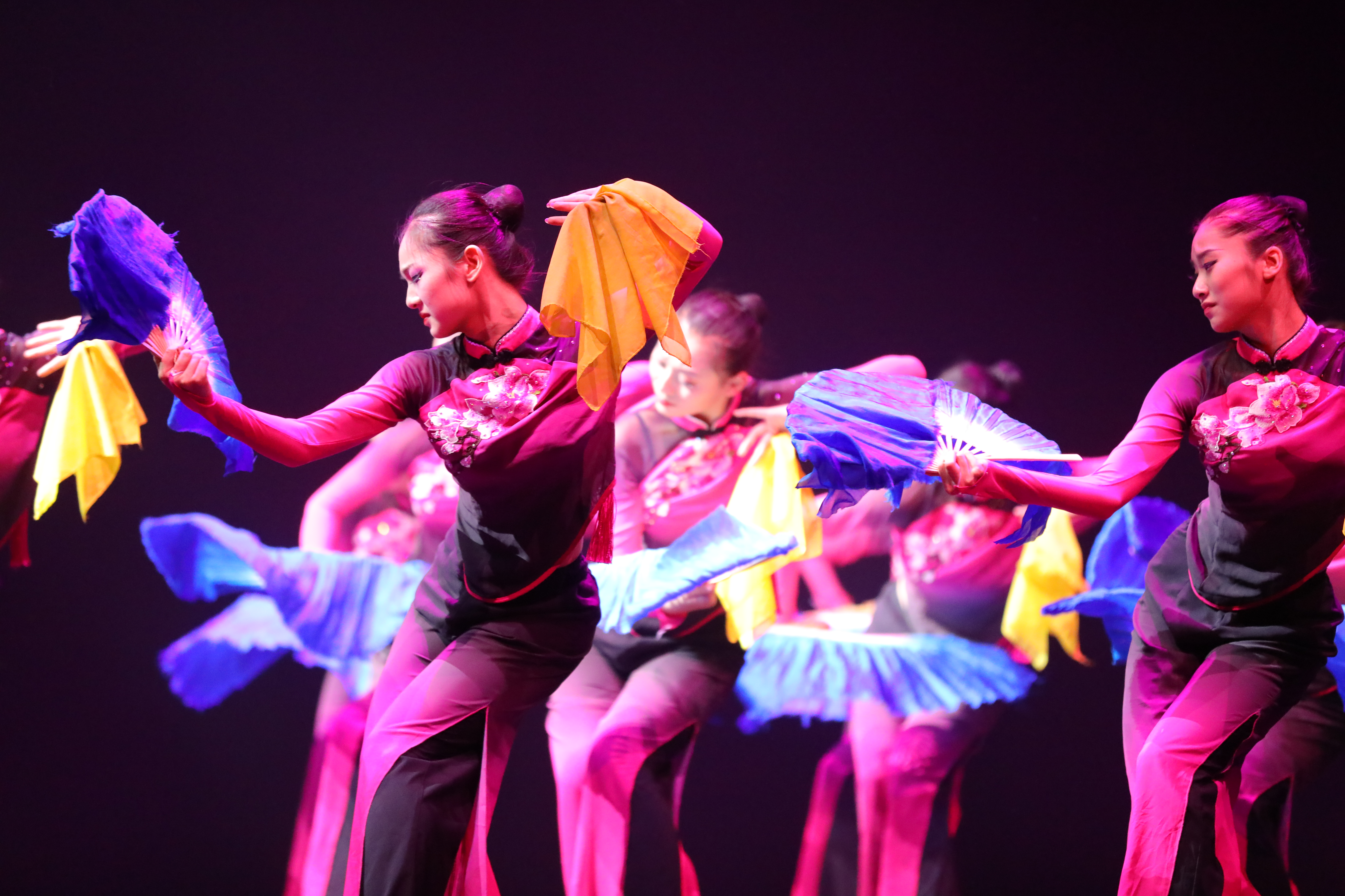 民族民间舞展示包括藏族民间舞、维族民间舞、蒙族民间舞和山东胶州秧歌,少数民族的热情豪迈和风格特色在舞台上都被展现得淋漓尽致。《红色恋人》以上世纪三十年代白色恐怖下革命先辈坚持革命的事迹为背景,演绎了一段革命者与进步女青年在对共同理想的追求中伟大而又浪漫的爱情故事。《水墨孤鹤》充分刻画了孤鹤的形象,将意境塑造与舞蹈完美融合。《草原情诉》是舞蹈系师生原创的一个舞台剧,是这场演出的一大看点。一群身着蓝裙袍的姑娘们,斜身而立舞台中央。她们端庄而富有独特民族风格的舞姿明朗大方,美丽的脸庞上漾满喜悦的微笑。一叠叠高高耸立的白瓷碗稳稳地随着姑娘的身姿飘来移去,像水中的萍,似天上的云,流动的舞姿和静立的碗影,构成一幅舞蹈与技艺完美交织的动感画卷。《山之子》中哈尼族热情而不失内敛、豪放不失温婉的民族性格和大山一样的情怀在舞蹈中呈现。《秋天的记忆》诠释了爱给予一个怀揣梦想只身在外之人的强大力量。《彩虹桥》描述了仰彩虹的赛德克族和信仰太阳的日本大和民族在台湾山区爆发冲突,赛德克族头目莫那鲁道率领族人三百多名勇士对抗日本三千大军。双方各执立场而战,只是他们忘了,无论是信仰彩虹,还是太阳,他们信仰的,是同一片天空……《尘视角》用舞蹈来阐述人生,我们都是这尘世风景的一处花草,在属于自己的白纸上,涂抹了或淡或浓的一笔宣墨。