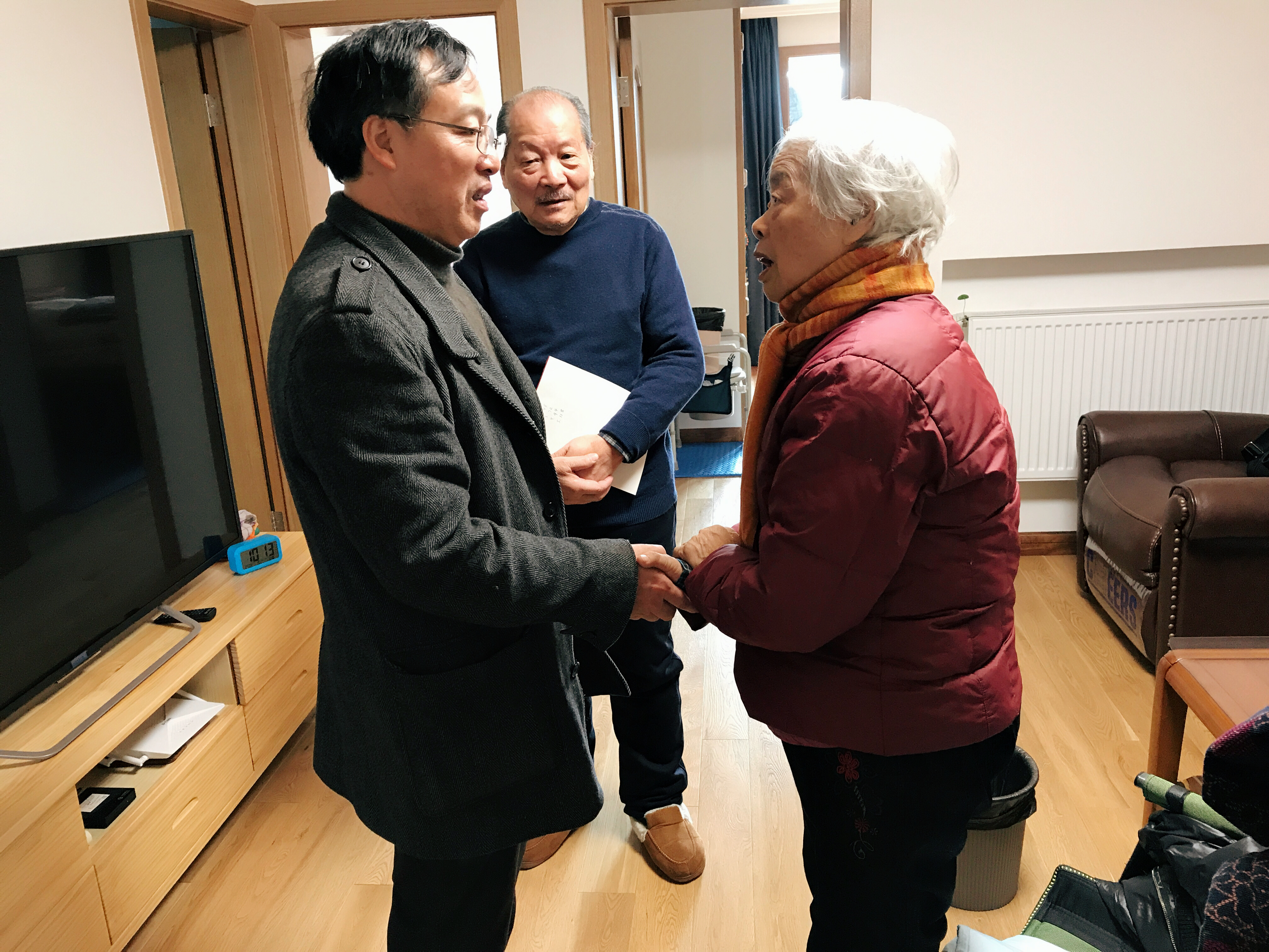 1月22日上午,影视技术系党总支书记、副主任彭云波,影视技术系专职副书记王筱芽前往退休教师邵小文家中走访慰问。