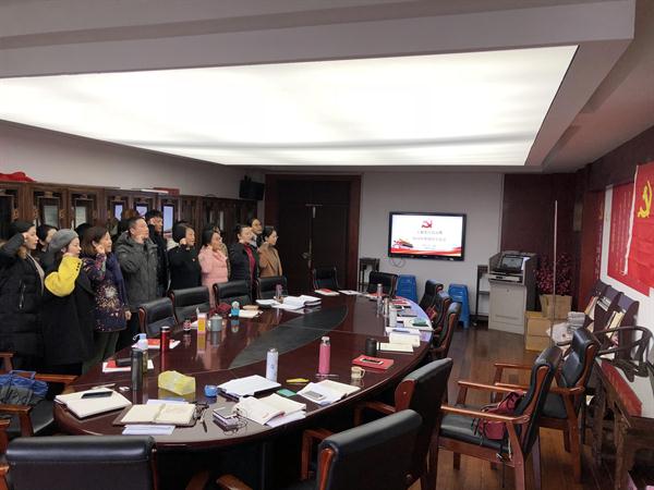 最后,全体教师党员重温入党誓词,面向鲜红的党旗,高举右手,朗声重温入党誓词,牢记使命担当,向党旗致敬。