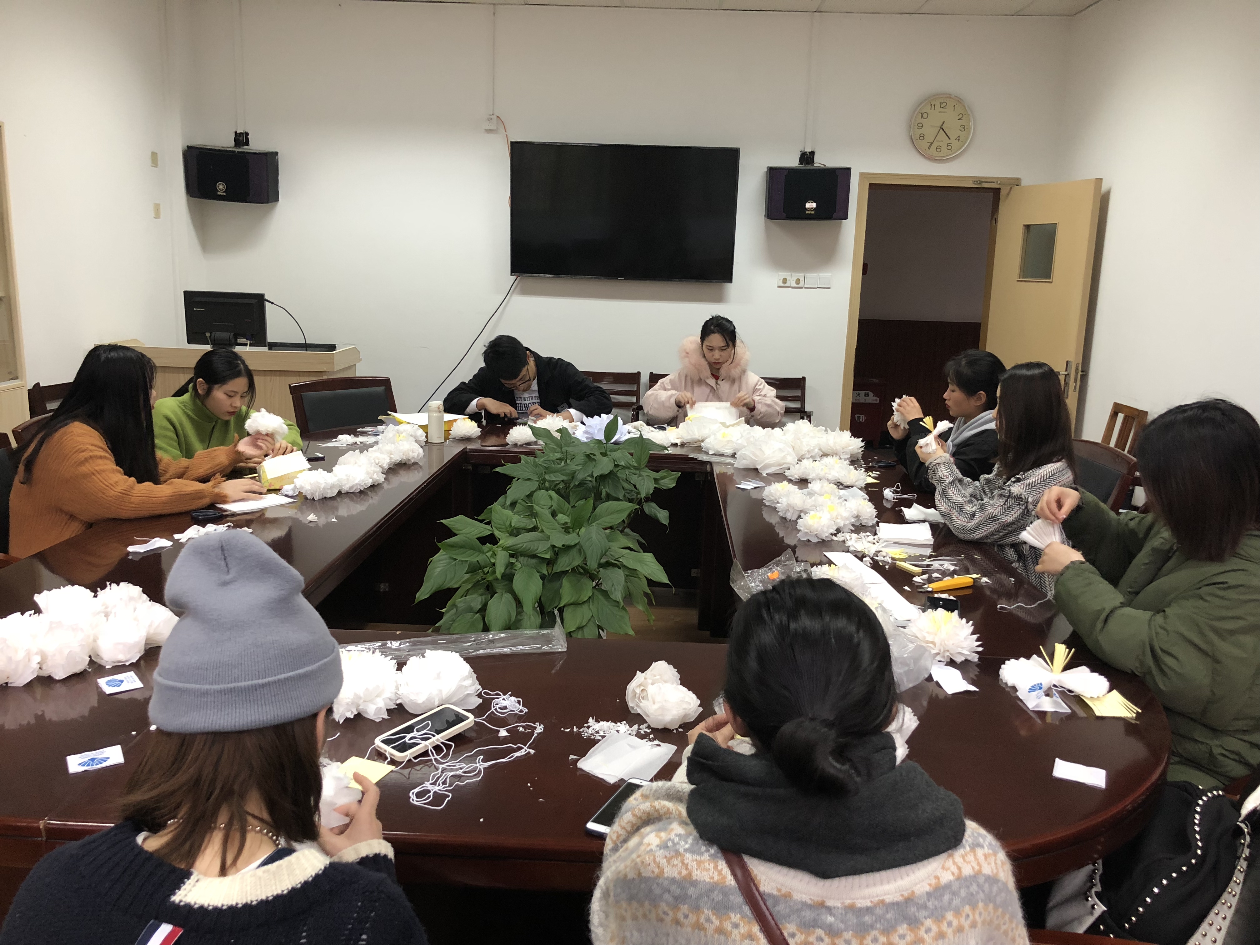 在前一天下午,音乐系学子怀揣着崇敬之心,亲手制作了寄托哀思的小白花,来表达对先烈们的由衷敬意。