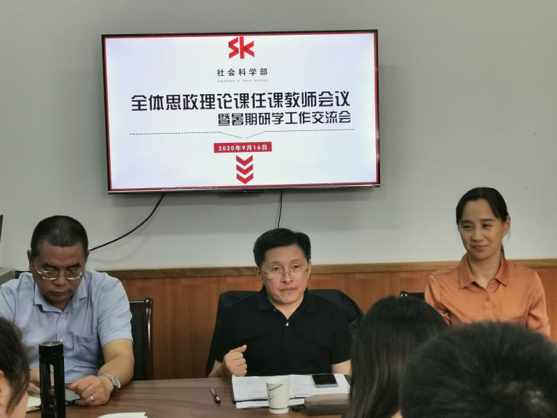 9月17日上午,社会科学部召开全体思想政治理论课教师大会暨暑期研学工作交流会,总结暑期研学成果经验,部署新学期工作,展望未来建设发展。校党委委员、宣传部部长马向东出席并讲话。社会科学部副主任胡卓群主持会议。全体思政理论课专兼职任课教师与会。