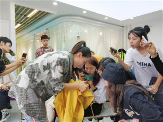 任敏从材料、定稿、版型、样衣、成衣几个方面和同学们分享设计过程。她从创新研发的前端思路,拓展与输送思维的方法,材料到成衣制作的过程,让同学们认识了小到一个纽扣,一条拉链,都是创意,还要结合尺寸和合理的数据限定,植入到设计作品中去。并介绍了真假皮毛的辨别方法、不同的皮种的区别,拿了多种面料小样,让同学们亲身感受不同皮料的特性。