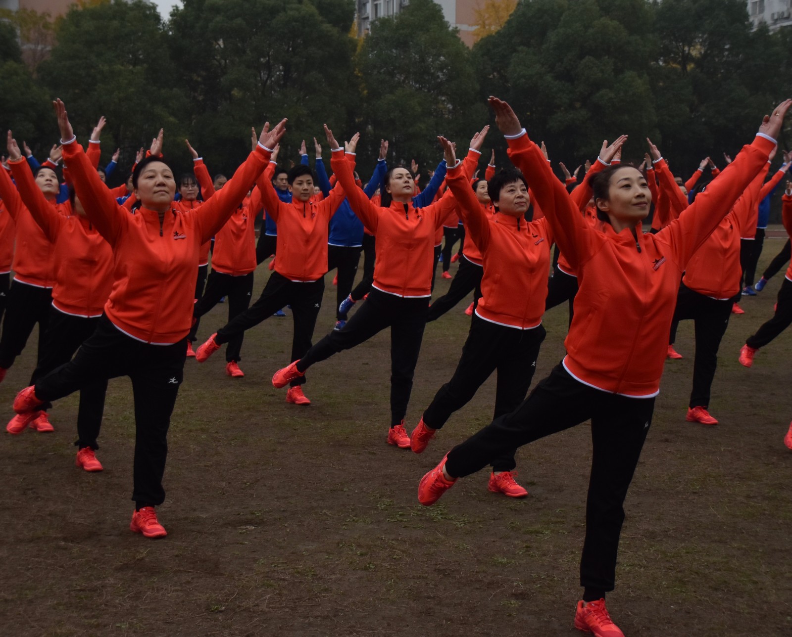 瑟瑟寒风挡不住老师们的激情。戏剧系全体教职工身着统一服装,踏着整齐的步伐,齐喊“凝心聚力,双高建设;奋力打造,重要窗口”走向主席台。做操时,老师们动作娴熟到位,每一次摆头都干净利落,每一次伸展都张弛有度,每一次踢腿都刚劲有力,彰显了戏剧系教职工意气风发、团结共进的精神风貌。