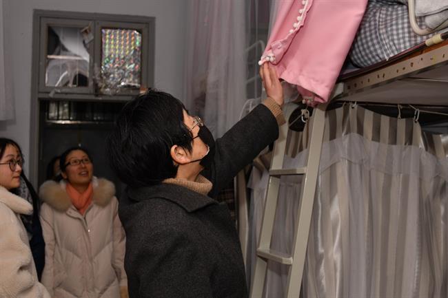 1月12日,文化管理系党总支组织党员教师走进学生寝室,要求学生文明离校、安全回家,叮嘱学生加强疫情防控工作,认真进行假期健康打卡和出省申报的统筹管理。