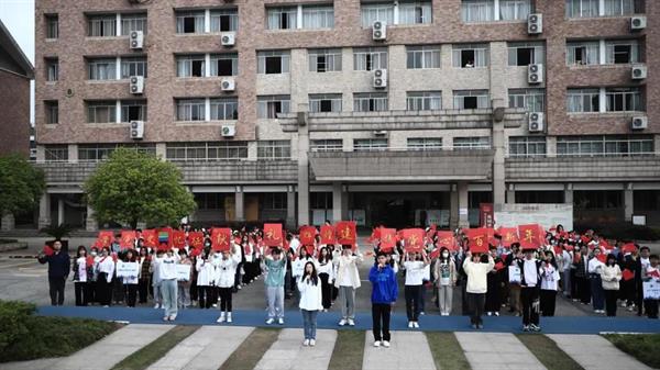 全体师生合唱《唱支山歌给党听》。