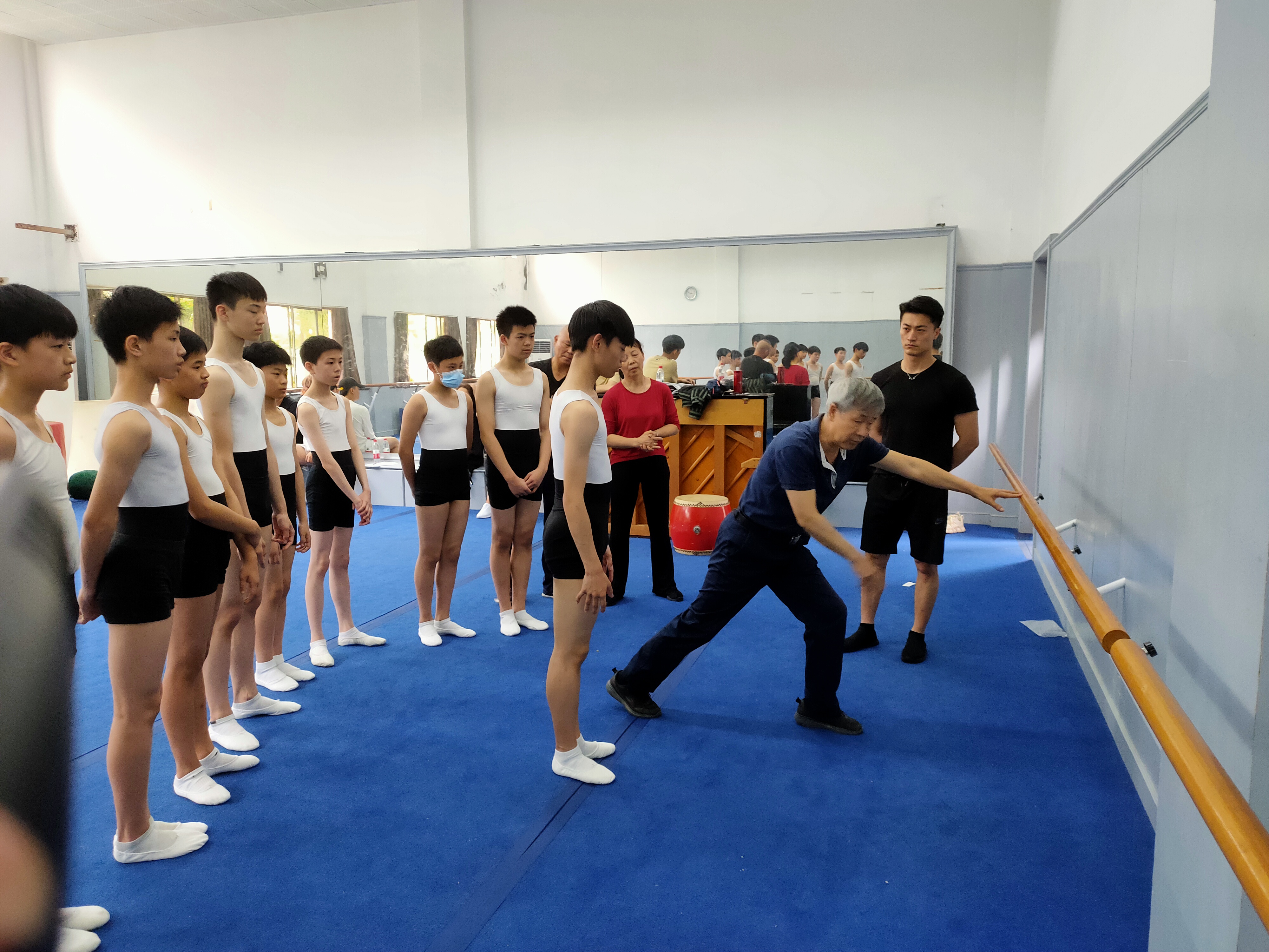 近日,浙艺舞蹈系基础教研室邀请原北京舞蹈学院中国舞技术技巧教研室主任姜振良来校开展为期3天的毯子功教学研讨活动,对中专舞蹈表演专业中国舞方向的毯子功教学大纲进行修订,对2018级、2019级和2020级男、女班进行现场教学指导,跟老师们交流分享教学经验。舞蹈系领导班子、基础教研室教师参加活动。