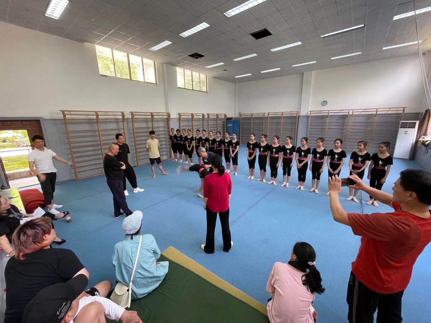 本次教研活动是解决基本功训练当中的一些薄弱环节,希望通过专家建议和意见,有一个更大的提升,同时也是对新进青年毯子功教师的一次“传帮带”。