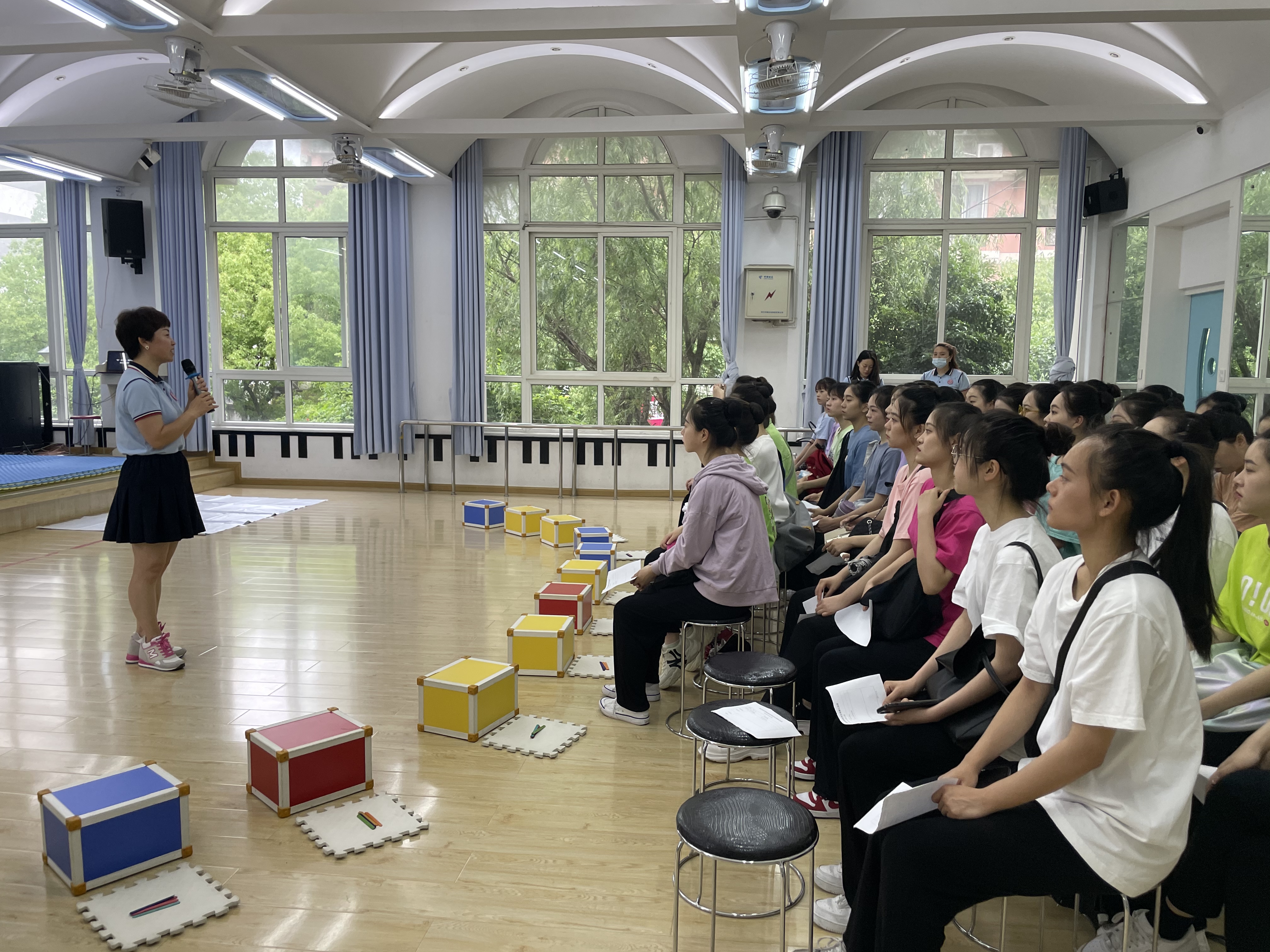 为了让大家更好地学习和了解儿童,徐园长特地组织了观摩优质示范课教学活动。在课堂中,几位老师将教学内容与游戏活动相融合,通过情景、游戏、表演等多种形式融合进教学,吸引孩子,大家在观摩中学习,记录课堂内容,在有限的时间里学习教学经验,为今后走上岗位夯实基础。