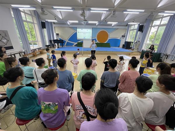 林娉如讲到:印象最深的是第二节课的男老师。老师通过唱音阶练习,让小朋友们带入到老师讲的童话故事里来。用贴纸图片的练习让小朋友快速记住歌词。后半节课孩子们通过道具(软球和飘带)和音乐一起舞蹈,通过肢体语言来表达音乐的节奏和韵动。老师用不同的创意和练习锻炼孩子的视觉、听觉、触觉,最终都是让孩子能熟悉的运用五线四阶。所以也让我真正懂得了音乐课教的不只只是音乐!