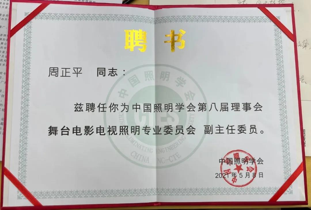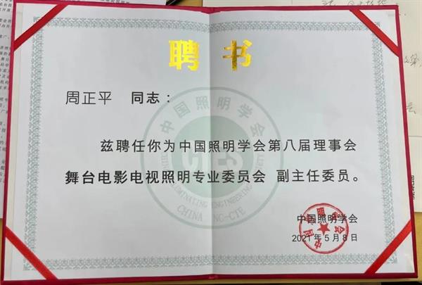 我校美术系首席专家周正平再次当选中国照明学会第八届舞台电影电视照明专业委员会副主任