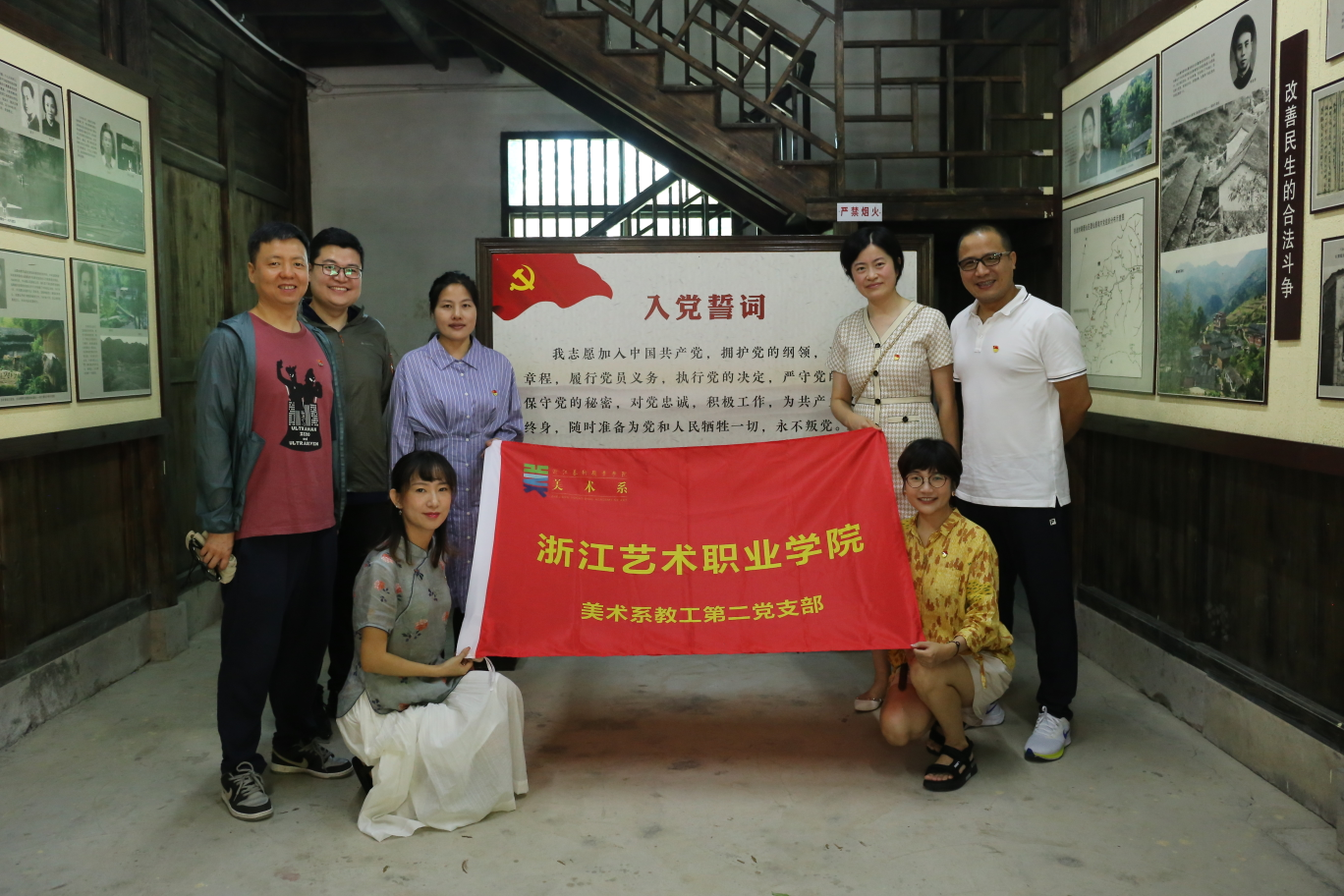 为庆祝中国共产党成立100周年,扎实有效开展党史学习教育,引导党员教师在学思践悟中赓续红色根脉,砥砺奋斗精神,增强基层党组织战斗力和凝聚力。7月12日,美术系党总支带领全体党员教师、教职工赴中共仙居县委旧址开展主题党日暨“红色寻访”实践教育活动。