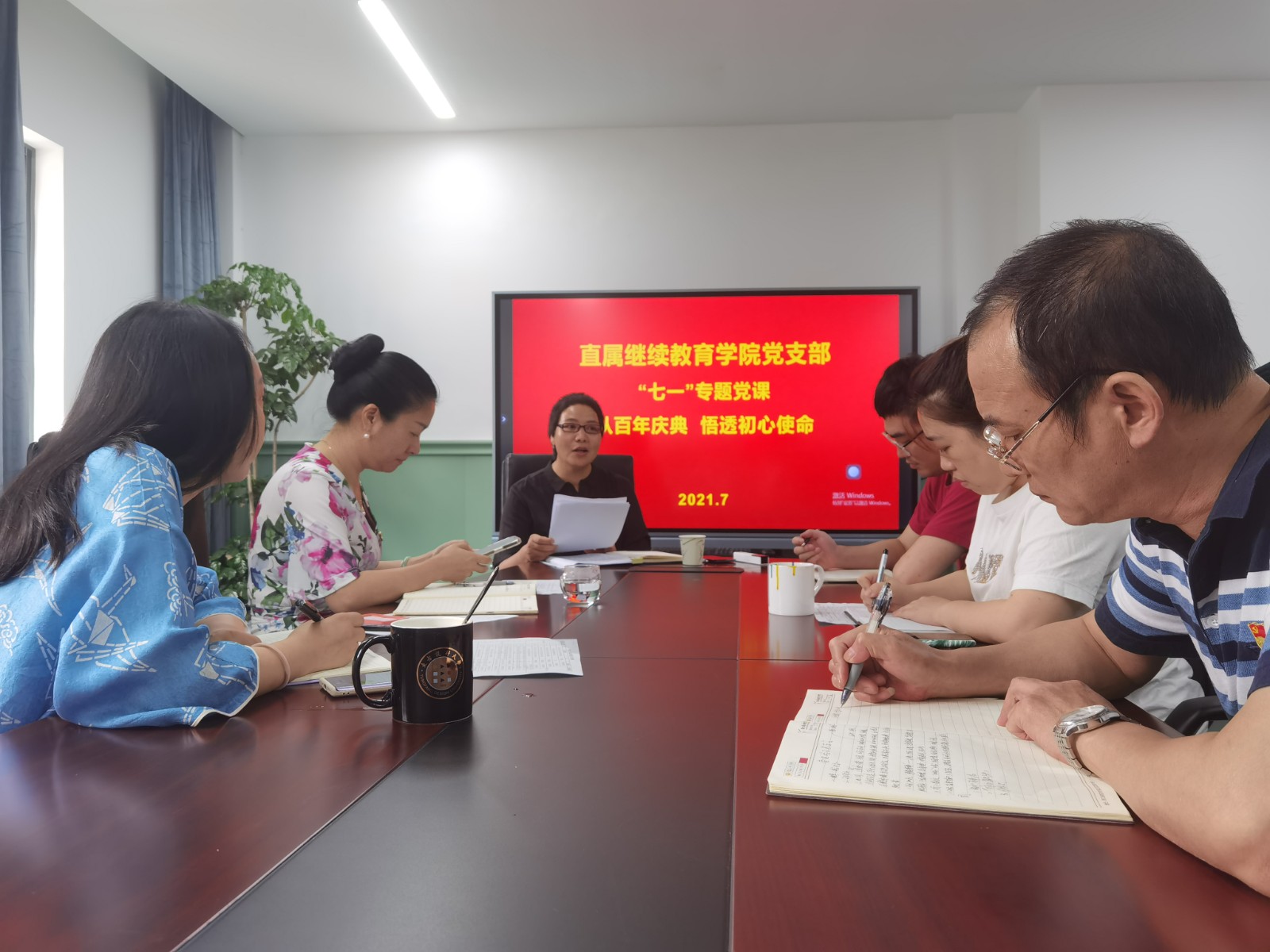 周丽芳表示,支部全体党员要从百年庆典和七一重要讲话中悟透初心使命,在第二个一百年目标奋斗进程中要有“强国有我”的抱负,永远跟党走,以初心坚定信心,以初心激发决心,赓续精神血脉,铭记使命嘱托,积极投身于文化人才培养、培育、提升的继续教育事业上去,为文化发展提供强有力的人才支撑,积极投身于“文化强国”建设中去,为社会主义现代化强国和实现中华民族伟大复兴的中国梦贡献力量。