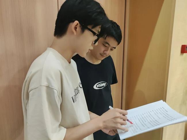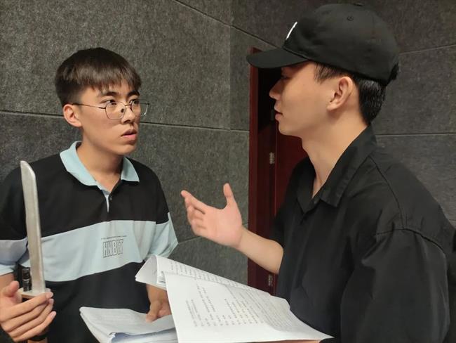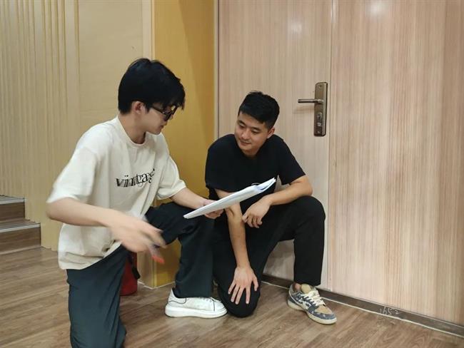 8月5日至6日,戏剧系实践团队师生为横坎头村原创红色话剧《我的山村别样红》进行指导排练。此剧组的演员全是横坎头新农村开发有限公司的职员,从未接触过话剧表演,齐帅为他们上了一堂生动有趣的“表演训练课”,通过几个小活动,让他们进一步解放天性,初步了解表演,建立舞台信念,为后续排练做好准备。短短的两天时间里,实践团队师生分工协作,从早上一直排练到晚上,虽然有时一个动作要指导好多遍,但大家都乐在其中,师生们和演员们打成一片。最终完成了《我的山村别样红》第一、二、三幕的排练。