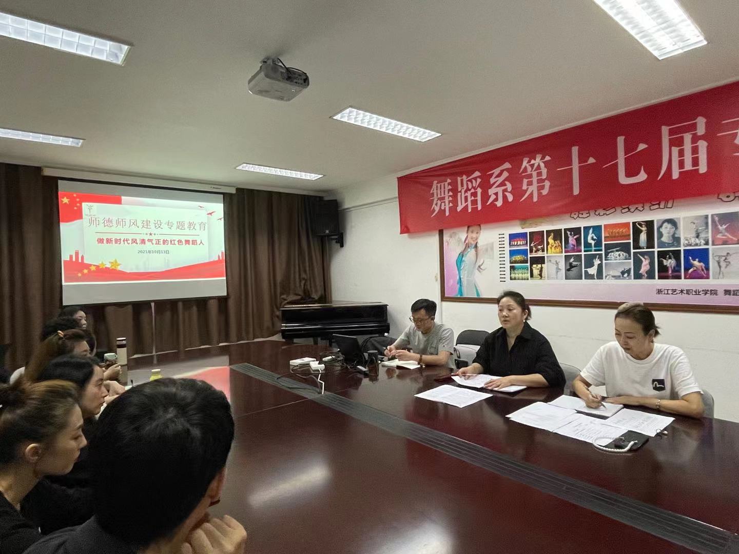 为深入学习贯彻习近平总书记关于教育的重要论述和全国教育大会精神,全面提升教师思想政治素质和职业道德水平,10月13日,舞蹈系按照学校的统一部署,组织全体教师开展了师德师风专题学习和警示教育。
