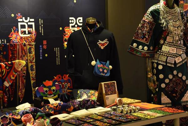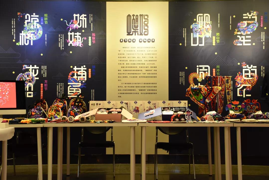 设计说明:“蝴蝶妈妈”原创苗绣图形设计将12个神灵用苗绣技法中“平绣”的形式语言刻画出人脸兽身、牛头鱼身等一系列带有苗绣风格的图形设计。12个神灵图形又分别代表12个具有苗族风情的民族节日,每个节日体现了苗族文化背景下的历史文明和苗族人对祖先的精神寄托。“蝴蝶妈妈”苗绣图形设计承载着深厚的苗族文化积淀,传达出苗绣图形抽象夸张、色调对比强烈的独特风格。