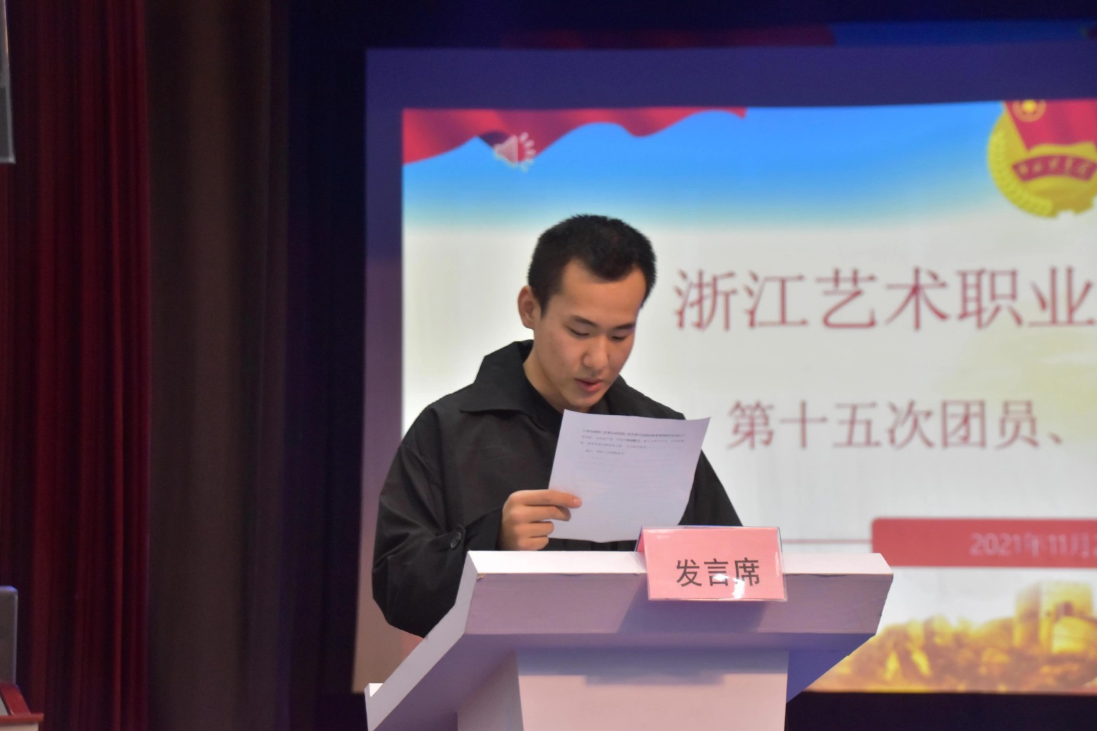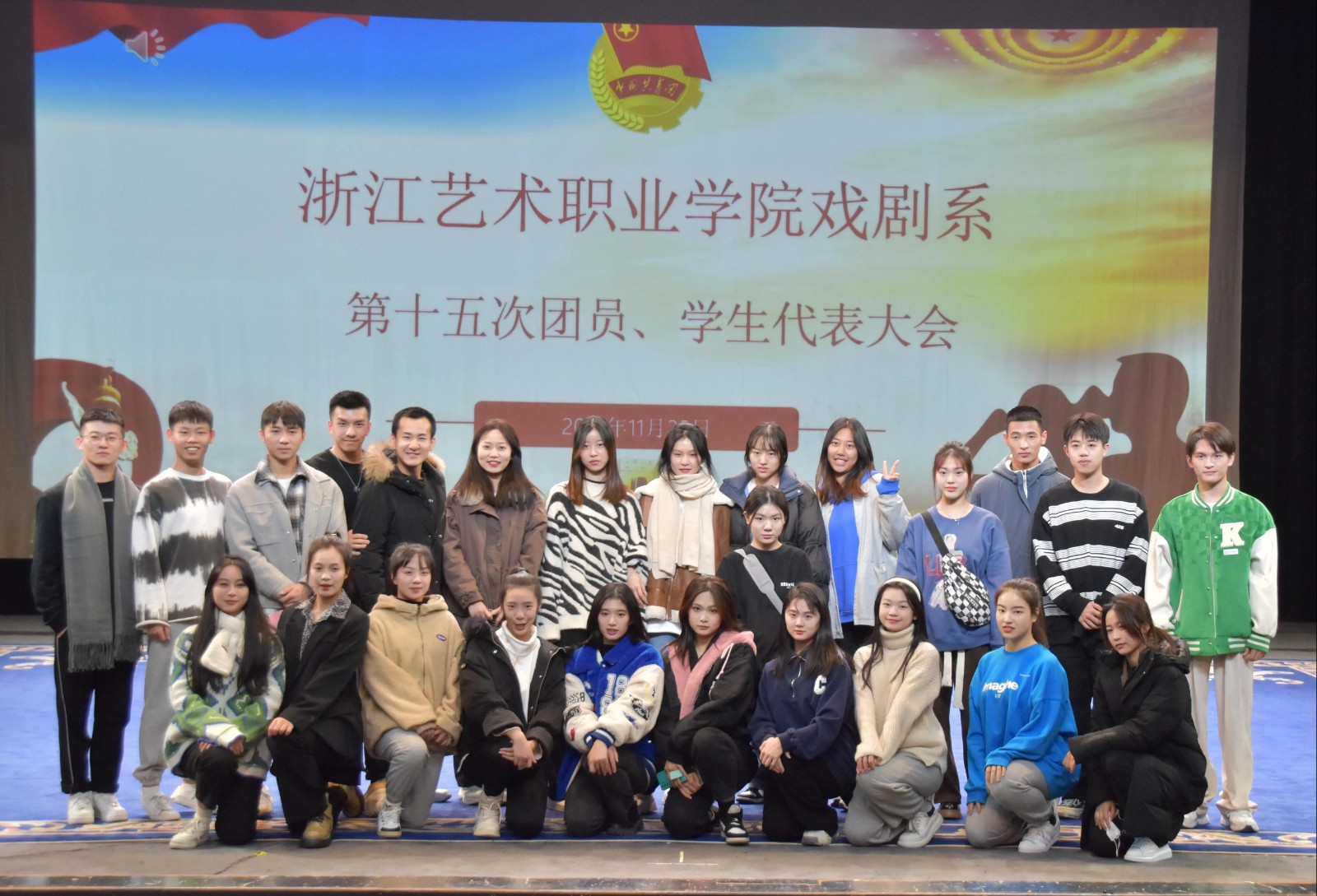 11月25日晚,戏剧系第十五次团员、学生代表大会在2号楼小剧场举行。校学工部副部长、团委书记郑吟,戏剧系副主任(主持工作)那刚、党总支专职副书记许瑛、系副主任荆芳,全系70余名团学代表参加会议。