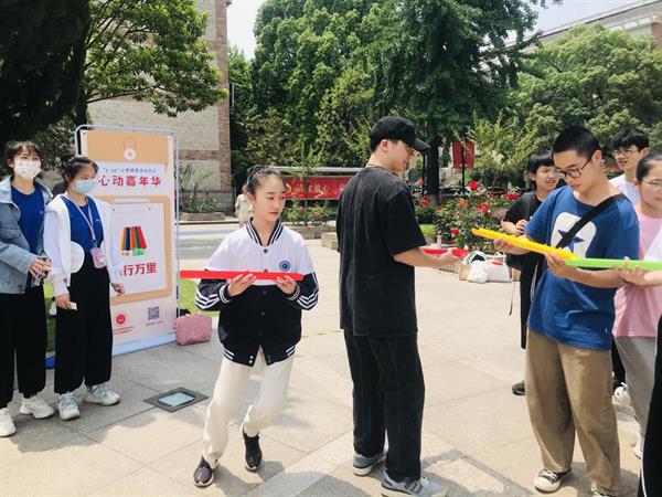 8号楼正前方,国旗下矗立着此次心动嘉年华的活动指南牌。活动围绕八个子活动推进同学们之间的合作关系,也有利于锻炼各自的应变能力。同学们在起点处拿到用于记录的卡片后开始计时,参与八个主题游戏并收集志愿者的小红章,返回起点结束计时即完成任务。“珠行万里”“无敌风火轮”“合力建塔”等合作性活动考验团队配合度,吸引了一大批热情的体验者。“潜意识的力量”“答案之书”“解压涂色板”等治愈系活动也纾解了同学们的心头之忧。