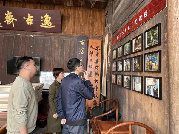 5月4日,手工艺学院党总支书记、副院长金银琴一行前往富阳逸古斋元书纸有限公司,拜访了省级非遗“竹纸制作技艺”传承人朱中华,就手工艺学院正在筹备的黄龙洞非遗主题展览一事开展了交流与讨论。