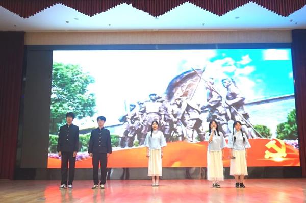 21定向班杜柯鑫、蔡柯意、陈欣苗、廖纯钰等同学带来的诗朗诵《百年征程》,将中国共产党一百年的奋进历程犹如一幅气势宏伟的画卷展现在观众们面前,同学们激昂的朗诵声中,诉说着百年征程的波澜壮阔,历久弥坚的百年初心。
