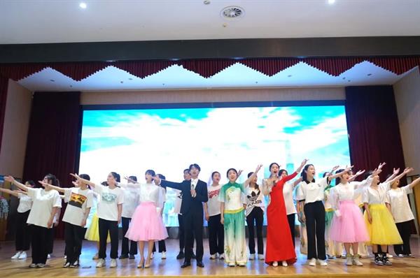 青年教师沈贝贝带来的独唱《希望的田野上》,稳健的台风结合上专业的唱腔,引得台下的观众们拍掌作和,她悠扬的歌声中带着喜悦与高亢,将一代人有一代人的努力与理想在希望中唱响。