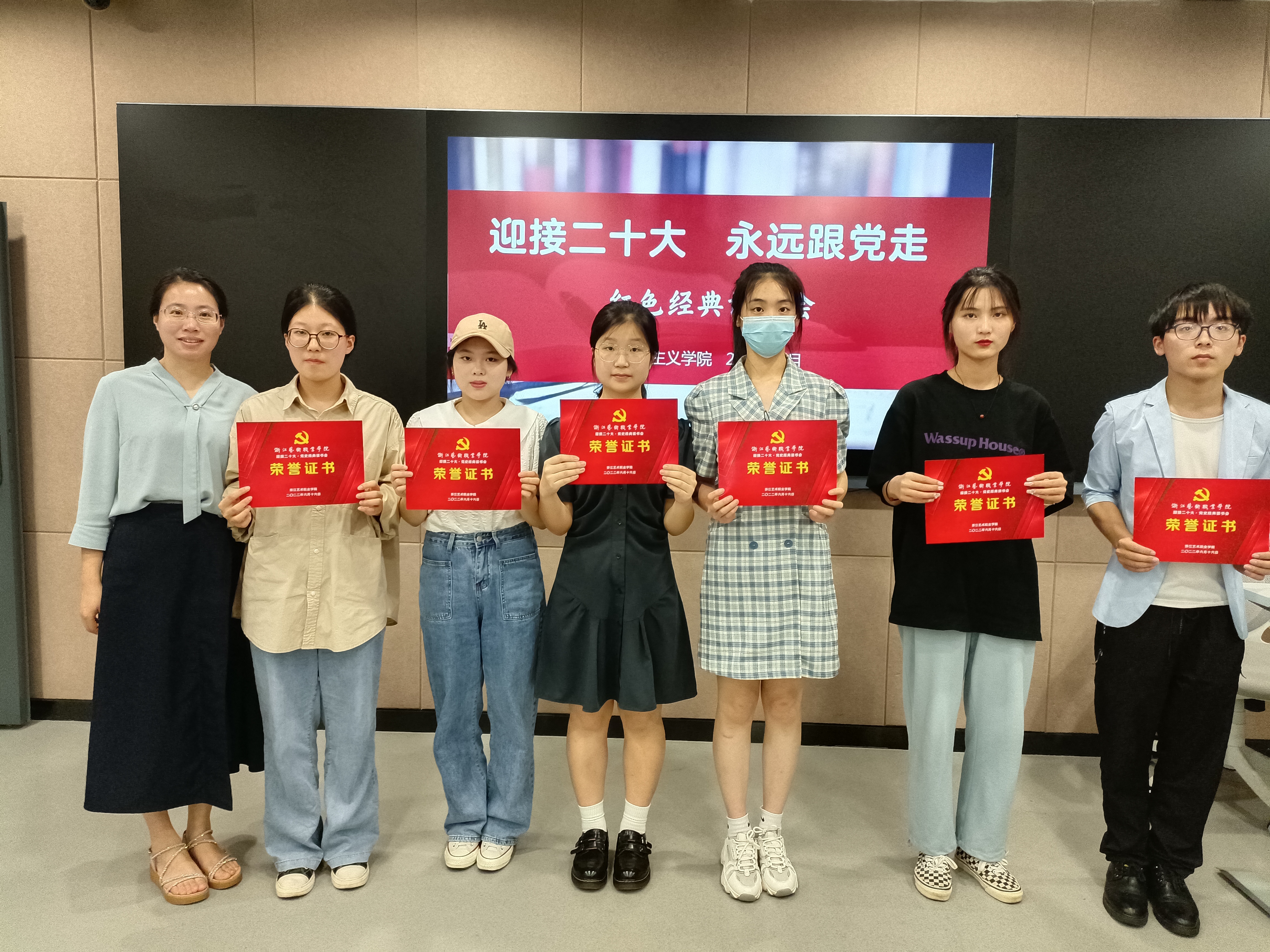 6月16日晚,浙江艺术职业学院“迎接二十大·永远跟党走”党史经典读书会在8707智慧教室举行。读书会以歌颂伟大建党精神、弘扬传承红色精神、传播中华优秀传统文化为主旨。活动前期,马克思主义学院组织全校高职以及本科班一年级学生读一本红色经典书籍、写一篇读后感,让同学们通过品读红色经典著作,来感悟时代变化,体味人生价值。同时,通过遴选优秀读书心得,进行分享交流。马克思主义学院直属党支部书记、副院长陈毅,副院长胡卓群以及基础教研室专兼职教师参加活动。