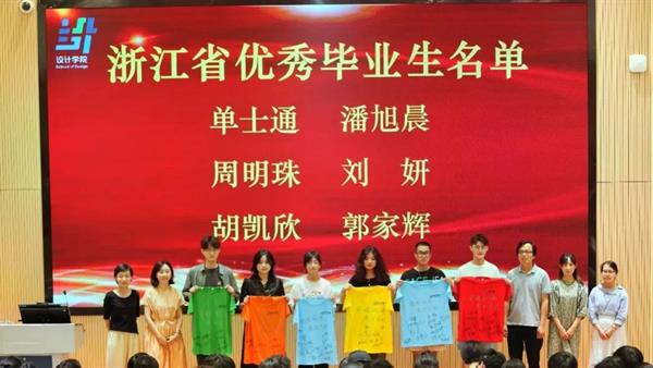 设计学院党总支书记汪琳宣读“浙江省优秀毕业生”名单。她向同学们送上毕业寄语,希望同学们能够坚定信心,阔步前行,以谦逊、善良、敢于担当的优秀品质,拥抱未来。