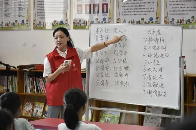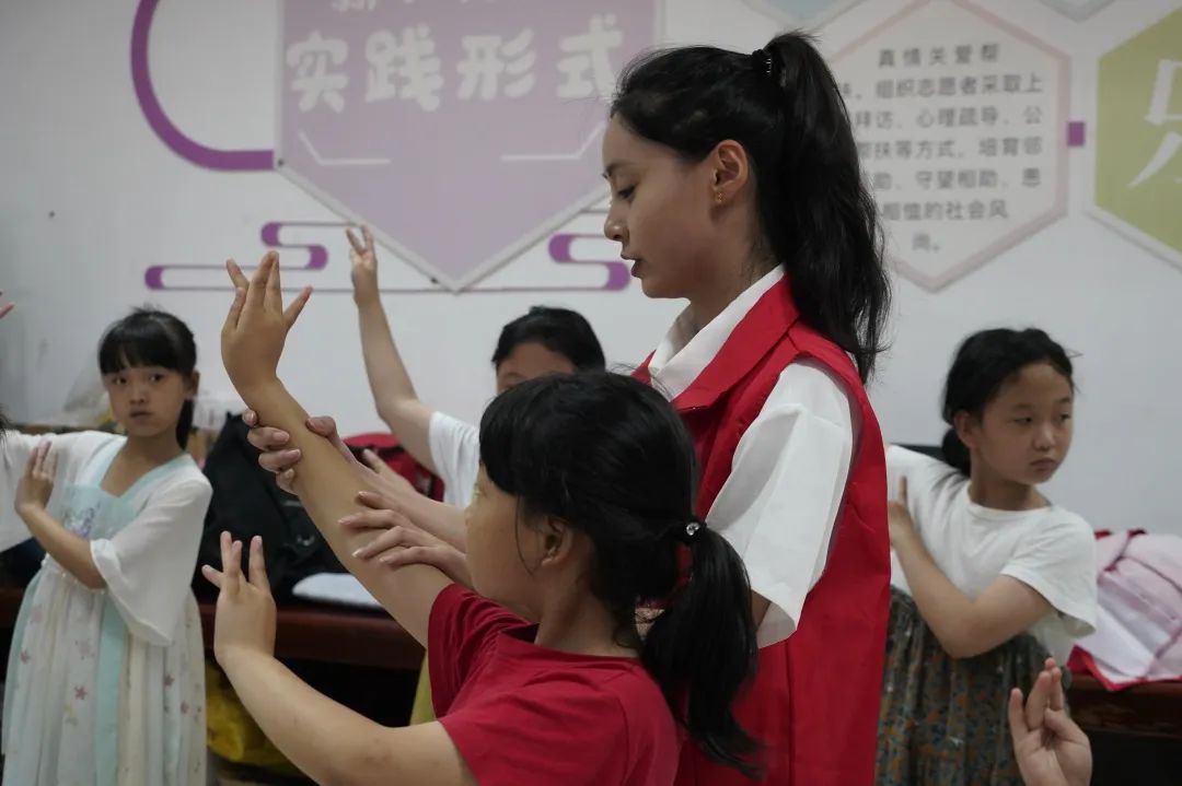 孩子们虽身处偏远乡村,但纯真的眼睛里闪现的是对梦想的渴望,面对一群零基础的孩子们,支教组从最基础的站姿训练出发,借助游戏的方式展开教学,课堂教学氛围融洽,口部操、《弟子规》《数枣歌》等在队员们的指导下,孩子们渐入佳境。