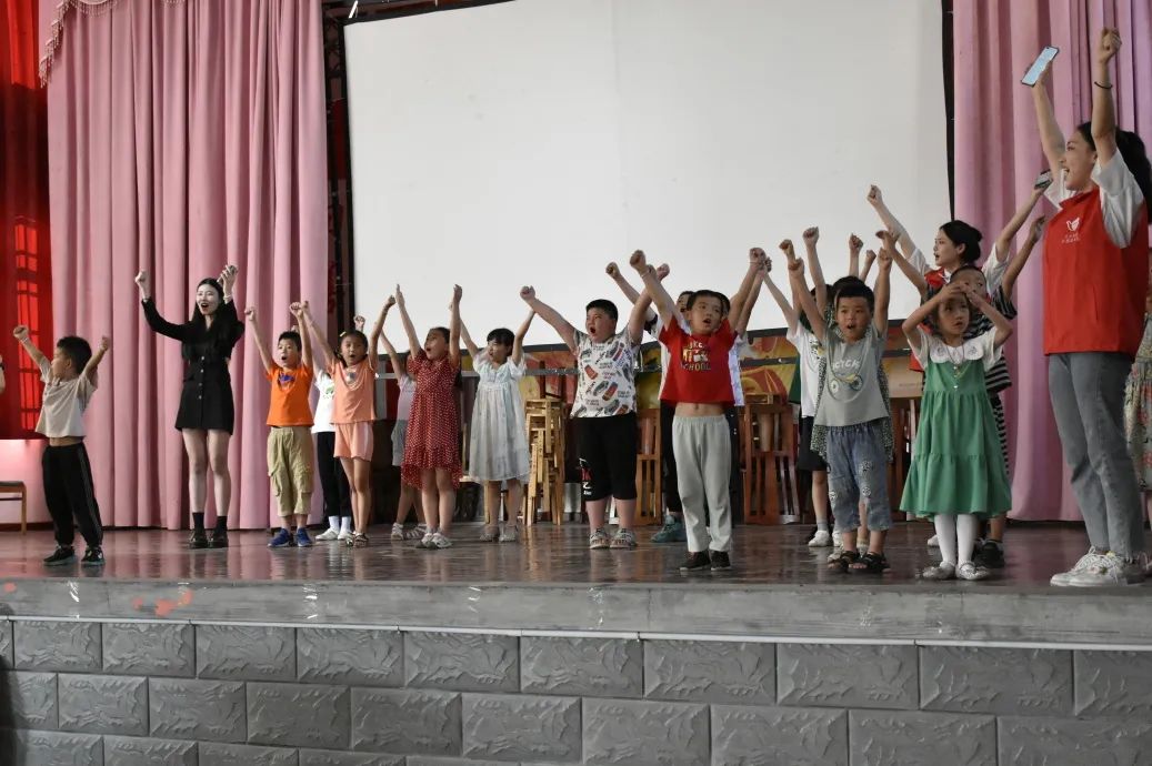 队员们在和孩子们打成一片之后开始紧锣密鼓的筹备着汇报演出,演出共10个节目,在大墅村文化大礼堂举行。支教组的成员们齐上阵唱歌、跳舞、诗朗诵……节目精彩纷呈,引人入胜。