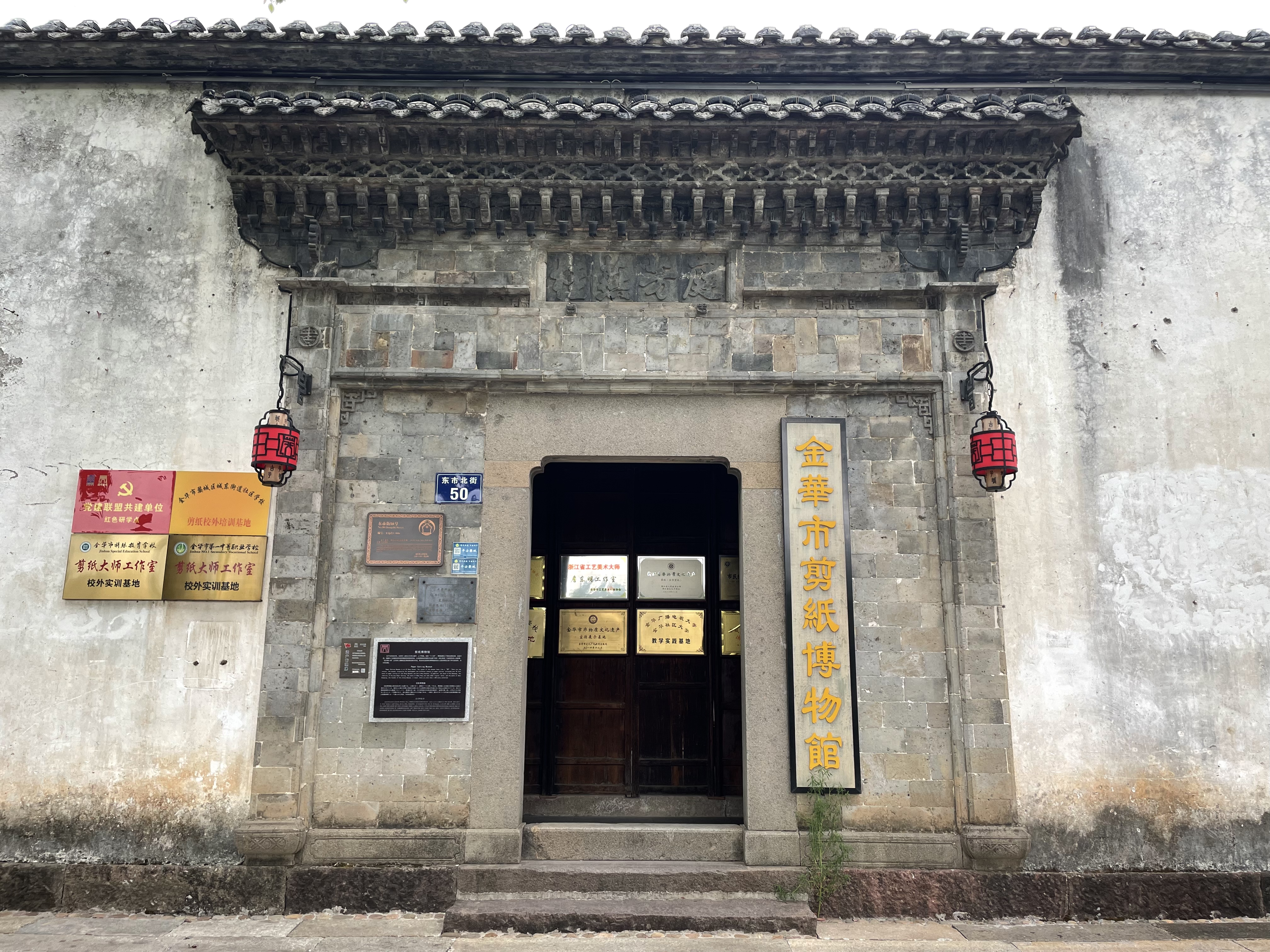 金华市剪纸博物馆是由高级工艺美术师、浙江省级工艺美术大师、省级非遗“金华剪纸”传承人詹东明创办。自2011年成立以来,一直坚持免费向公众开放,积极履行社会责任,以展示、宣传、研究、保护与传承剪纸非遗为立馆宗旨。馆藏有詹东明先生的3500多件作品,以其体量之大、题材之广泛而著称。在交流过程中,馆方向我们介绍了民间非遗传承之路的真实现状,也讲述了目前非遗传承所面临的人才匮乏、支撑不强等发展困境,双方也就未来的学生实践、展览交流等事项达成了初步合作意向。