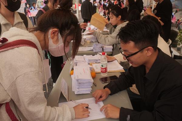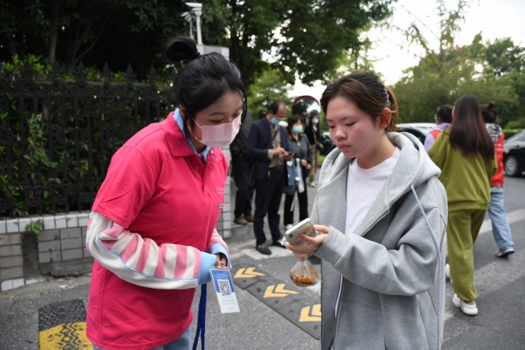 同学们前往“立志园”、“立业园”扫码办理入住手续,领取“新家”钥匙。