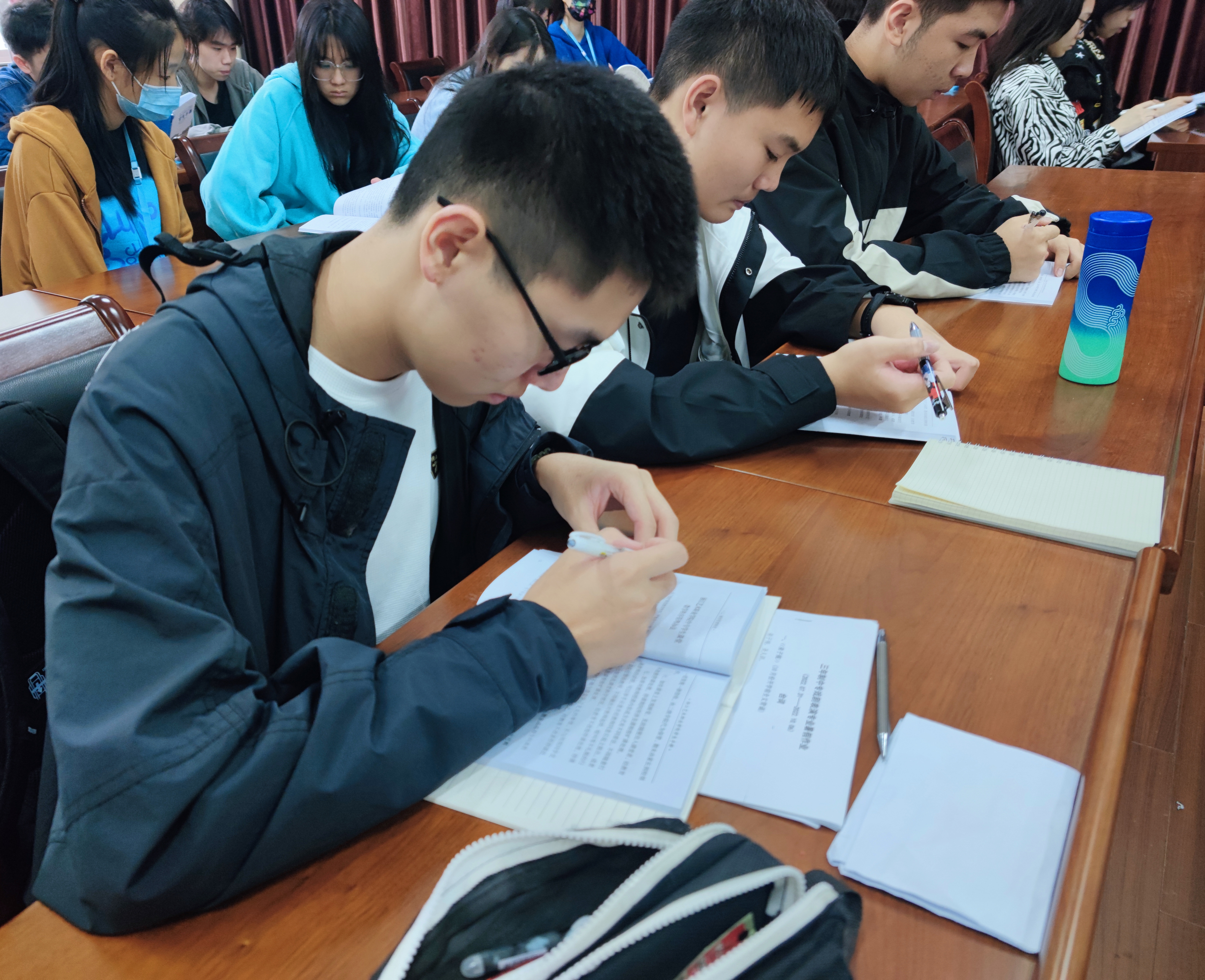 新生们认真学习《学生手册》,对学校的学生管理、教学管理等规章制度有了更加深刻的了解。