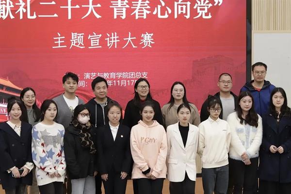 为进一步引导师生学习贯彻党的二十大精神,掀起党的二十大学习热潮,11月17日,演艺与教育学院举办了“献礼二十大 青春心向党”主题宣讲比赛。经过初赛筛选,共有十二位选手晋级决赛。
