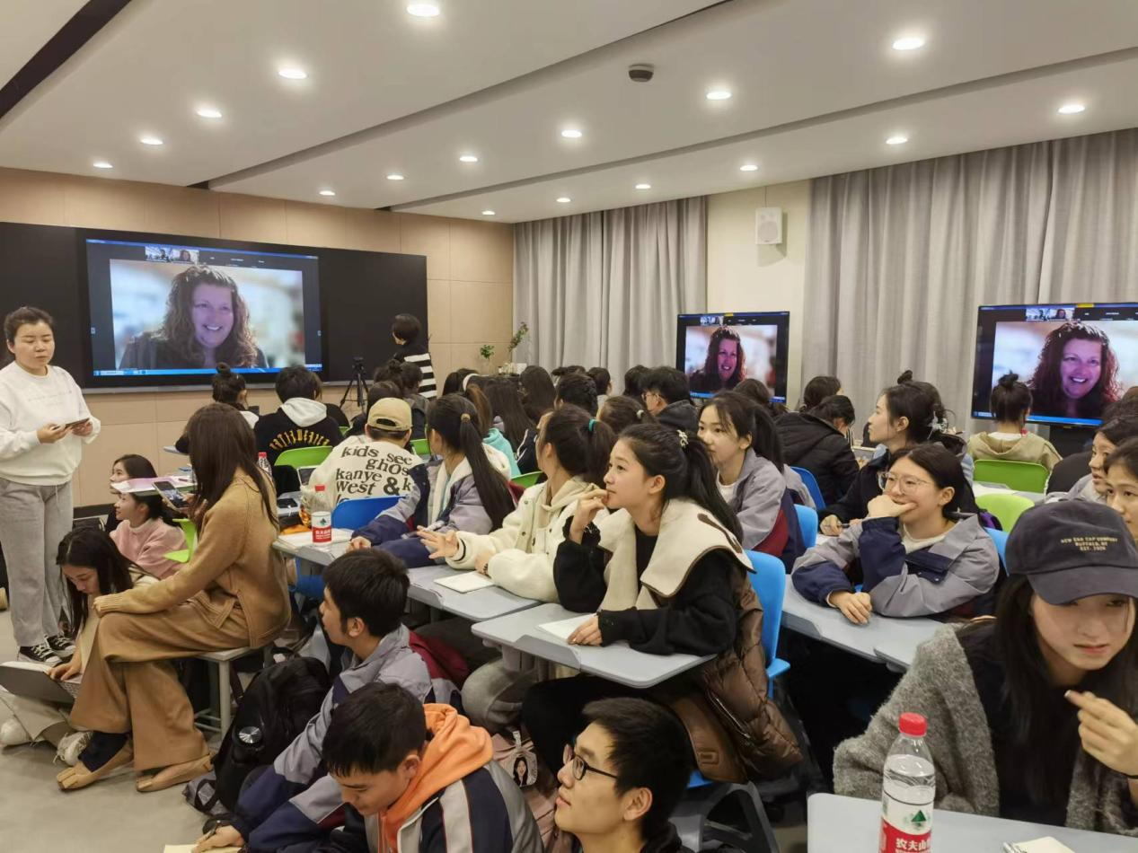 为进一步加强国际交流合作,开拓学校师生艺术方面的国际视野,加强艺术教育前沿动态的熏陶,11月17日、18日,办公室(外事办)联合音乐学院邀请美国迦太基学院艺术和人文学院院长、音乐剧系主任、音乐剧声乐演唱教授科琳·奈斯进行第一期线上讲座。讲座采取线上线下同步直播的方式进行,音乐学院和戏剧影视学院近六十位师生在学院8707智慧教室集中观看讲座。讲座由中国第一位音乐剧“文华大奖、文华表演奖”获得者、音乐学院音乐剧专业学科带头人章小敏担任翻译和课程指导。