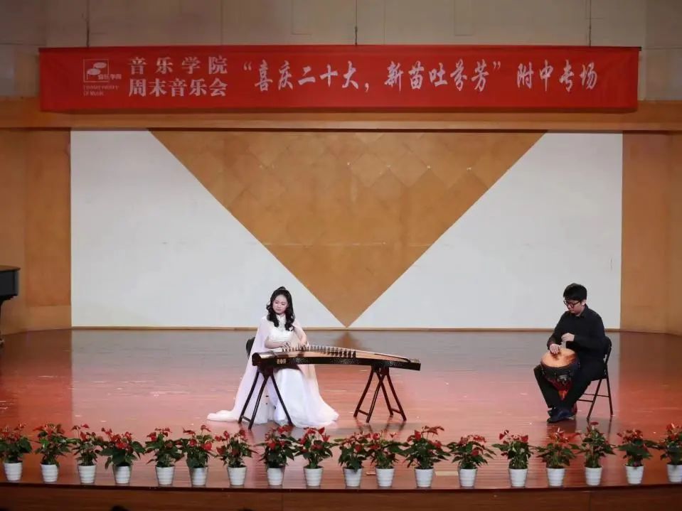 11月4日晚,音乐学院周末音乐会系列演出之“喜庆二十大 新苗吐芬芳”附中专场在浙艺音乐厅举行。附中新苗们给大家带来的节目既有中国民族乐器多元化的呈现,也有西洋管弦交汇的奇妙感觉。学院师生及部分附中家长观摩了演出。