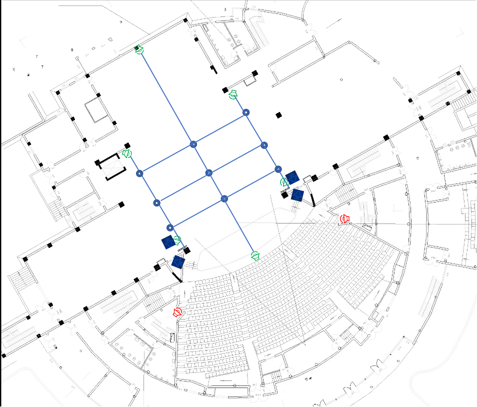 黄德聪从阐释多声道扩声声音设计的概念出发,为同学们介绍了设计项目和设计场地的现状,厘清了声音设计的思路,详细讲解了声场设计、音箱分布及整个系统的设计方式。本次演出以“宋韵”“诗路”为核心主题,通过三个篇章,六大精神实质,多种艺术表达,传递爱国、创新、包容的诗词文化,风雅精致的古典审美。