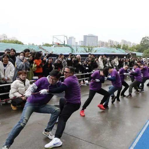 拔河比赛在现场热烈高涨的气氛中正式开始,七支队伍按抽签结果进行角逐。随着比赛哨声的响起,场内的呐喊声与加油声此起彼伏,双方队员紧握手中的长绳,弯腰扎步,卯足劲齐心协力往后拔。场边的老师和同学也不遗余力地为场上选手助威鼓劲,在红绳过线的那一刻兴奋欢呼,为获胜方喝彩,也为落败方鼓掌叫好。