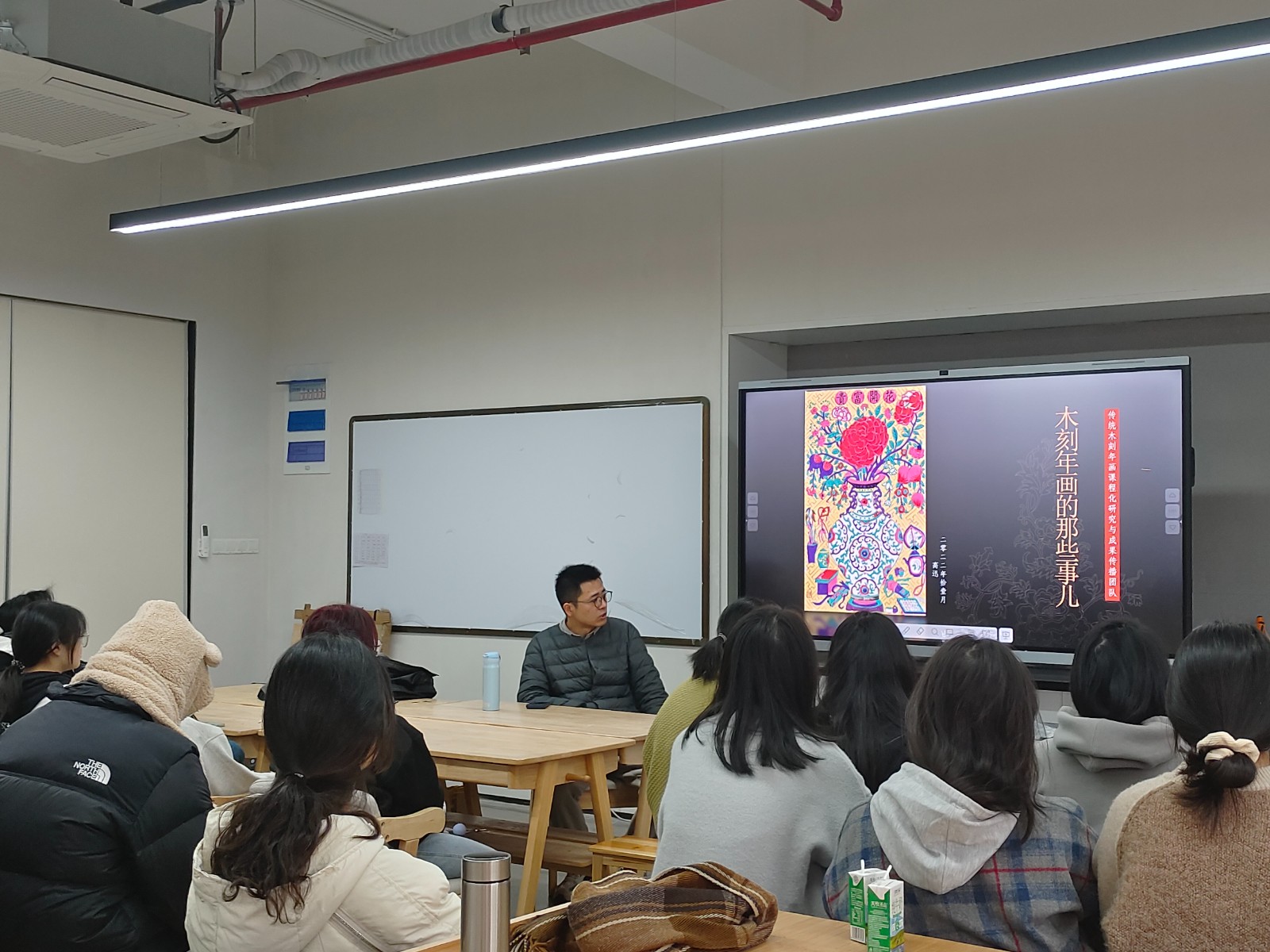 为了让大家了解传统木刻年画的魅力,增强手工艺学子的创作积极性,12月5日上午,浙江艺术职业学院2022年度青年教师科研团队-传统木刻年画课程化研究与成果传播团队开展讲座活动,手工艺学院民族传统技艺教研室专任教师高迅主讲《木刻年画那些事儿》。
