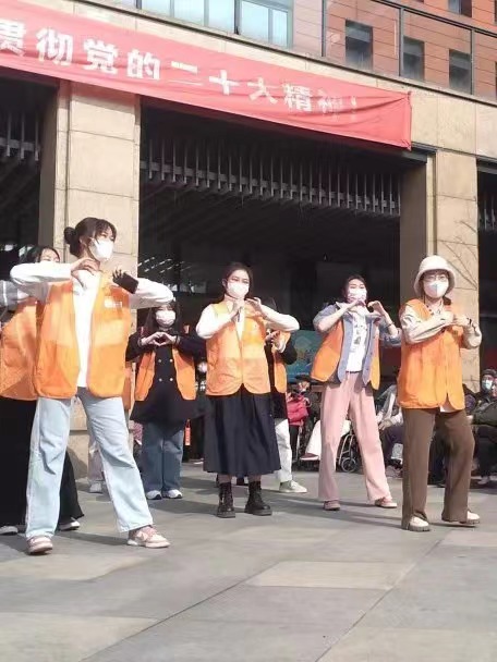 在温暖和煦的阳光中,演教学子们与老人携手排行阵列,似是志愿者们的热情点燃了老人,欢声笑语在养老院的上空不住地盘旋。演教学子各司其职,一系列有序地活动安排让慰问活动顺利开展。