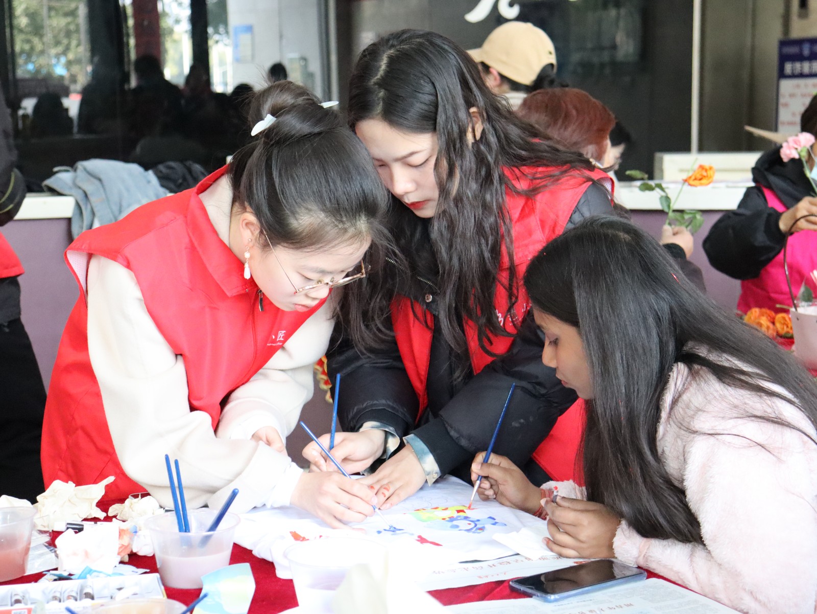 “像这样一勾一勒,颜料就能流畅与衣服贴合了……”3月2日,“艺小匠”走进东信社区,与外国友人携手共绘亚运精彩。“艺小匠”细心指导,一支支画笔、一点点涂画、一遍遍修改,一件件内容丰富、奇思妙想、充满亚运气息的作品完整呈现。