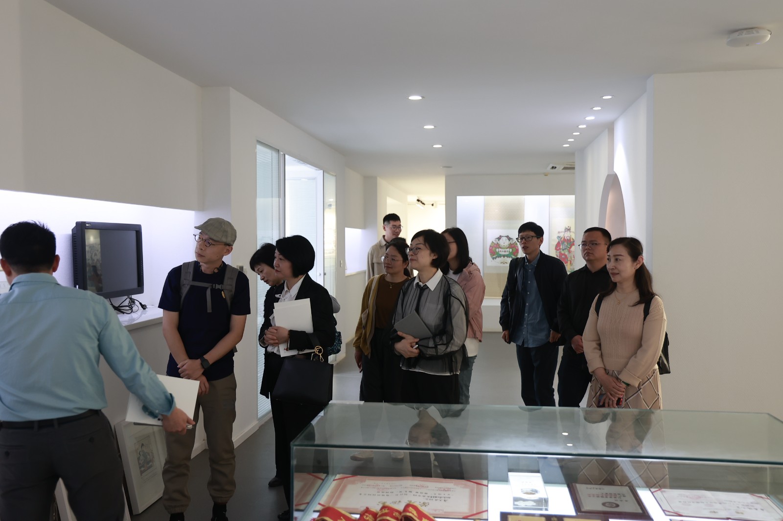 4月21日上午,黄杭娟一行考察调研南京艺术学院人文学院。南京艺术学院党委常委、副校长李彤,校党委常委、党委统战部部长、人文学院院长沈义贞等陪同考察。文物保护与修复系主任周庆介绍了该专业“厚基础、强实力、宽口径、高素质”的培养目标、着重培养学生扎实的文物基础知识、成熟的文物保护修复技艺及通过产学研融合、校地联合培养人才模式等方面的基本情况。非物质文化遗产系主任陈红雨介绍了该专业的办学历史、培养掌握“一门保护理论+一门技艺”的非遗保护管理者、非遗理论研究的综合性人才目标、传统工艺课程开设等方面的情况。座谈会上,双方就人才培养、非遗研培、实践服务、办学模式等方面进行了探讨。随后,黄杭娟一行参观了书画文物修复、陶瓷文物修复、古籍修复等实训场所,观摩了遗技之长——非遗“守正创新”双创教学成果展。