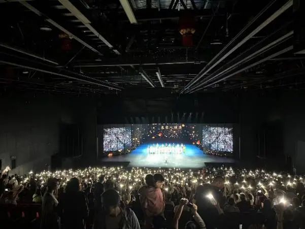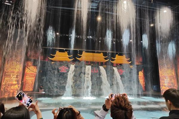 在五号剧院,同学们观看全息秀《幻影》,感受全息投影与现实碰撞的魅力。全息幻影秀通过全景LED屏和全息投影成像技术,用先进的声光电科技手段和舞台机械结合传统舞台演出,演绎了白蛇许仙等千古绝唱,给观众强烈的视觉冲击和心灵震撼。