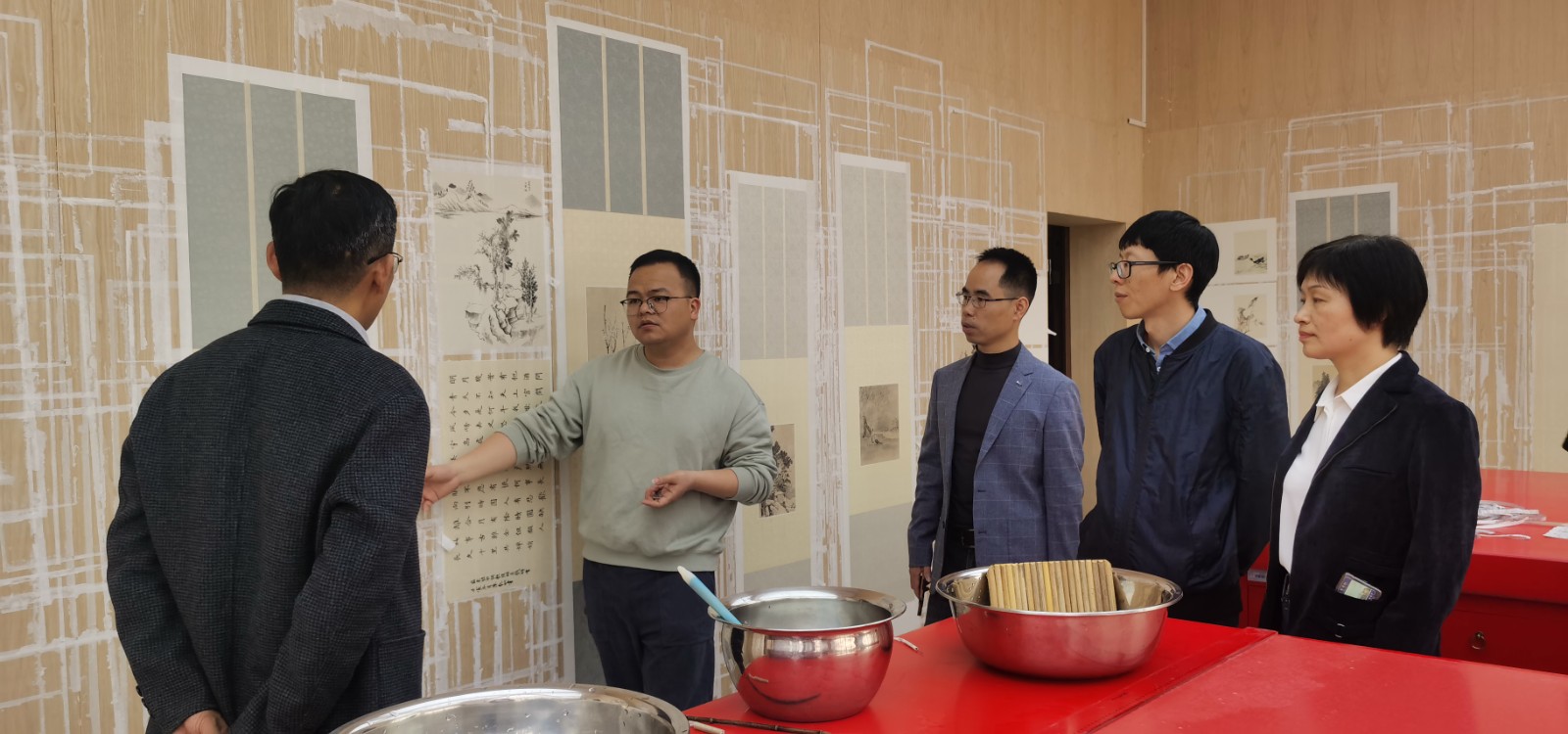 洽谈结束后,洪文祥一行参观走访了手工艺学院的实训室,近距离了解了文物修复与保护和民族传统技艺两个专业的课程教学内容与企业档案修复的匹配度,为双方的后续合作奠定了良好的基础。
