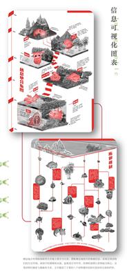 设计说明:该设计以“杭帮菜”为主题,旨在让更多人了解“杭帮菜”的特色与历史,宣传杭州的饮食文化。“杭帮菜”起源于距今一千多年的宋朝,我们将宋韵文化融入到视觉图形插画中,从多方面、多层次诠释“杭帮菜”的定义。以八种经典杭帮菜为主体,将杭州著名景点及建筑融入到花草树木、水泽山川中,再辅以“宋代女子”为蓝本设计的IP人物形象,以视觉鲜明的菜品、淡雅脱俗的景观、精巧动态的人物形象三者合一,创作出全方位宣扬“杭帮菜”与杭州饮食文化的作品。