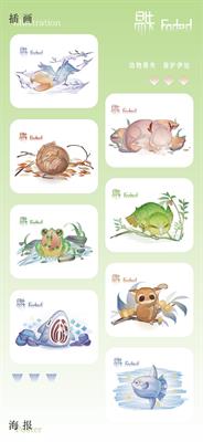设计说明:大自然创造了许多美丽可爱、富有灵气的生命,但随着社会的极速发展,大量的生灵由于自然灾害、人类经济活动、栖息地的急剧变化、猎杀等原因濒临灭绝,令人痛惜。本主题以濒危动物保护为切入点,采用多元化的手法重塑濒危动物形象,通过文创设计的形式向大众普及濒危动物知识。作品通过抽象几何风格的海报、卡通萌系插画、动物信息科普可视化图表、live2D游戏互动、3D角色盲盒等表现形式,将二维与三维多媒体技术结合,以丰富新颖的视觉表现形式来呼吁社会对该话题的关注。